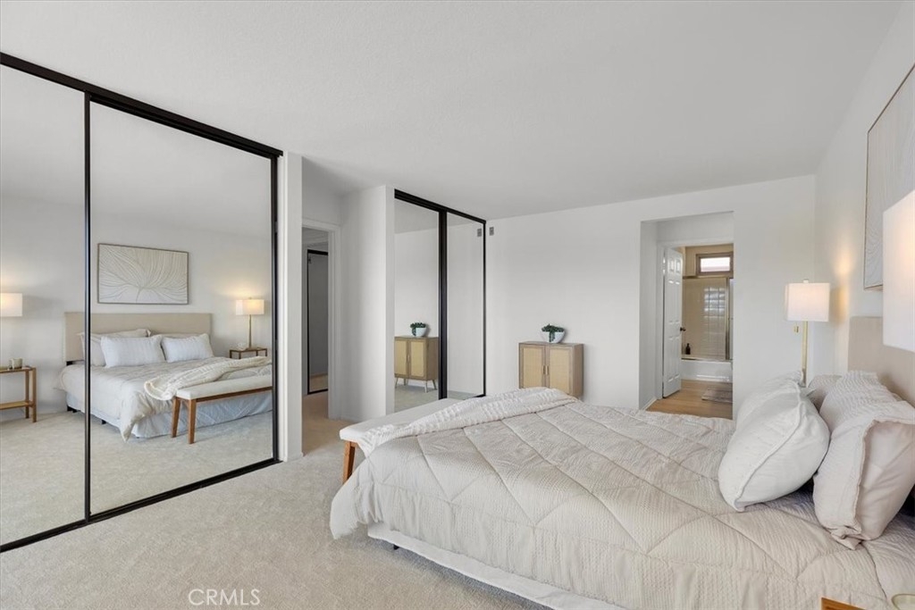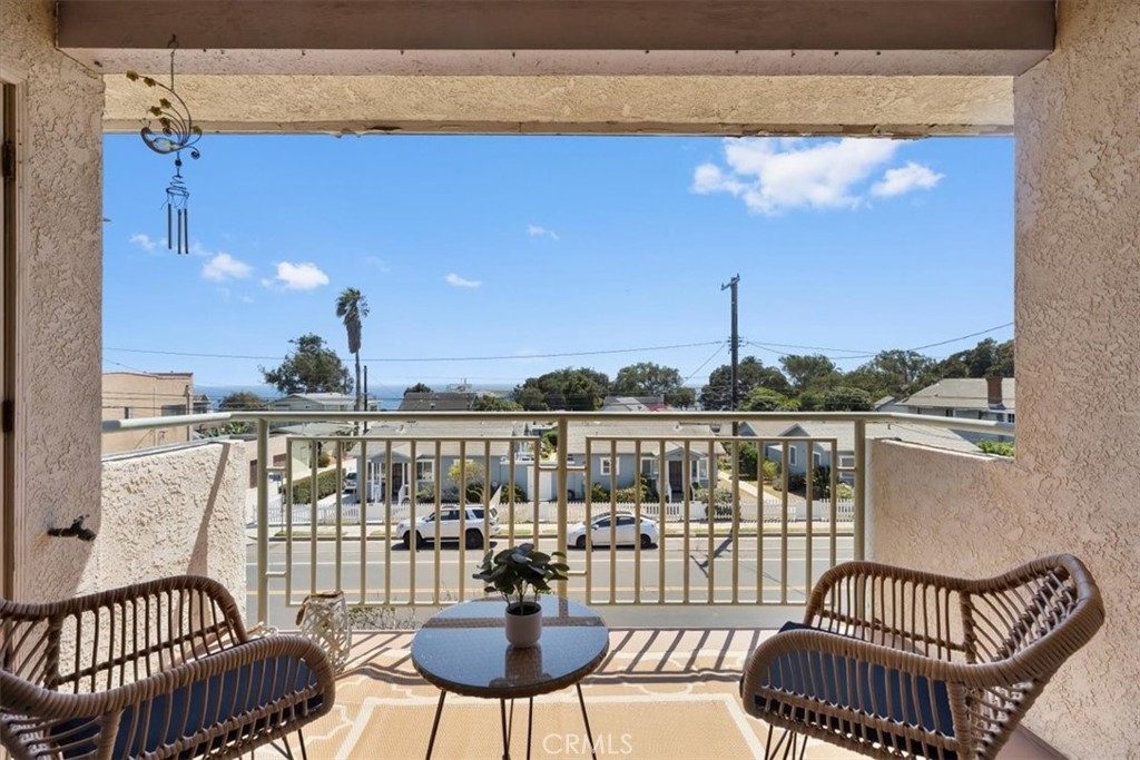 Looking for coastal breezes, a walkable neighborhood, and oceanfront charm? This is the one for you. Flooded with natural light, this inviting unit offers ocean and Catalina views and sits just a block from Point Fermin Park and Lighthouse, with Cabrillo Beach, local eateries, and transit nearby. Enjoy balconies off both the living room and upstairs primary suite, plus a versatile bonus room at the garage level—ideal for a home office, gym, or guest room. The kitchen and dining area open to a private outdoor patio, perfect for barbecuing or unwinding at day’s end. Freshly painted with new flooring throughout, this home is move-in ready. The primary bedroom boasts abundant closet space and a makeup vanity outside the ensuite bath, while the second upstairs bedroom also features its own ensuite. Additional highlights include an oversized two-car garage with laundry hookups, direct unit access, and secure gated entry to the private garages.