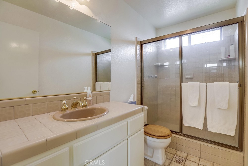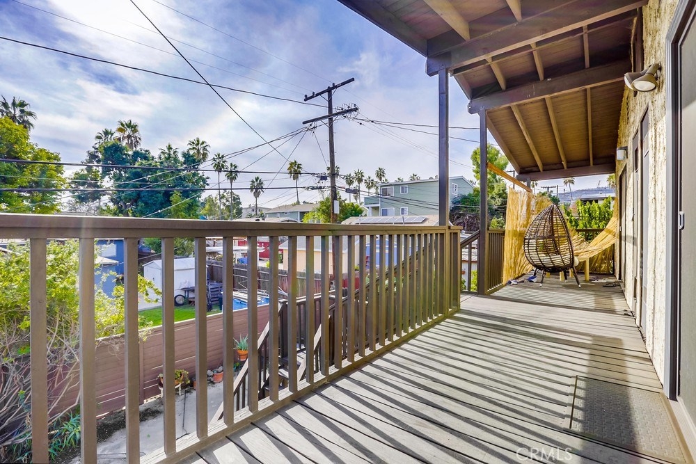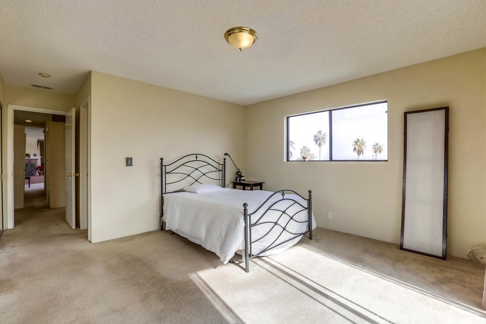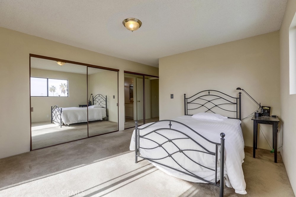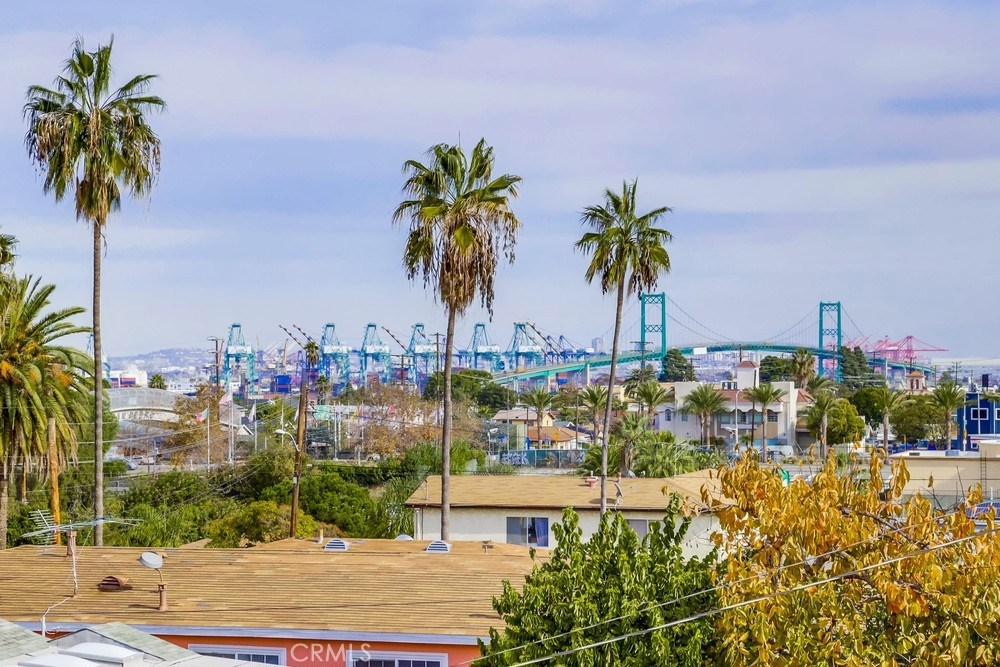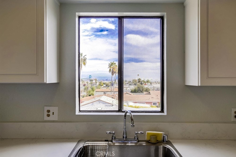 Situated on the top floor and favorably on the view side of the complex, this home has views of the Mountains, LA Harbor, and Vincent Thomas Bridge that light up at night. These views can be enjoyed throughout the entire unit from the private balcony in the front to the shared balcony off of the master bedroom in the back. With big windows throughout the home, there is plenty of natural light that flows in during the day. The kitchen has been updated with new quartz countertops, soft closing cabinets and drawers, and new floors. The kitchen is conveniently located near the dining room making it easy to serve dinner, as well as the private balcony which will come in handy to bbq or enjoy a warm cup of coffee while looking at the view. The other side of the kitchen leads to the spacious living room with big windows and a cozy brick fireplace for the winter time. Continue down the hallway with closet space for storage and a laundry room leading to the first bedroom with sliding closet doors and a full bathroom. The end of the unit reaches the private master bedroom with two large sliding mirror doors and an en suite bathroom. Sliding glass doors open to the shared balcony and stairs leading down to the shared yard. There are 2 car tandem parking spaces in the shared garage and a security gate. This home is within a mile to Downtown San Pedro filled with great coffee shops, restaurants, stores, and night life; and cannot be much closer to the freeway which is great for commuters!