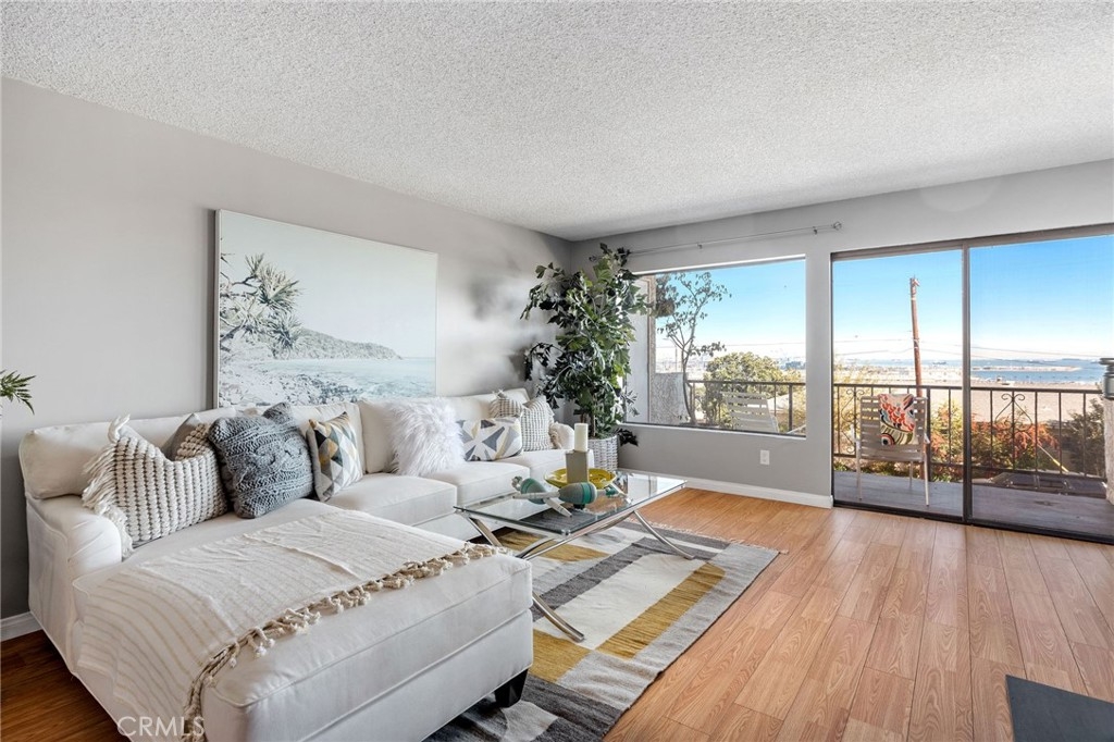 Few units in the Bay View Terraces offer a sit-down harbor view that compares to this! Wake up to sunset views with purple and orange skies as you sip your coffee; watch the activity in the harbor throughout the day; enjoy the sparkling lights of the harbor and city as evening closes in. On the weekends, watch the cruise ships pull out of the harbor and imagine where they could take you. Inside, you'll love the completely remodeled bathrooms designed by the Seller which include dual shower heads in the owner's en-suite bathroom. The contractor remodeled the bar to include a wine fridge and granite counter, with blue cabinets to match the fireplace. The color of the remodeled fireplace mantle was inspired by the fireplace mantle in Aerin Lauder's (granddaughter of Estee Lauder) office fireplace. The balcony off the living room is just waiting to host your 4th of July fireworks party or your Holiday viewing of the boat parade! You'll love the easy living in this unit from the included washer and dryer to the proximity to the front door, mailboxes, and elevator. When you come home, you'll notice your parking place is the closest to the HOA door and the elevator to the first floor. You'll also love the convenience of a walk-in storage unit in addition to a second storage unit, plus a second parking space. Amenities include a pool, spa, sauna, gym, exercise room, and meeting room with amazing views that can be rented out for parties.