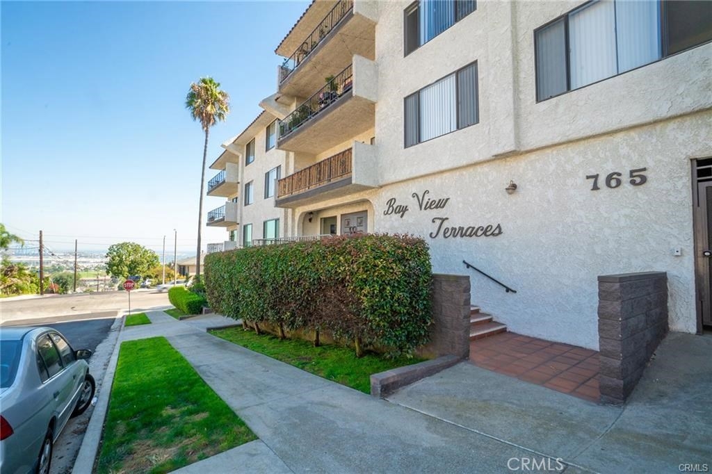 Don't miss this great opportunity to own in the Palisades area of San Pedro in the desirable Bay View Terrace complex. Seller says get it sold!! This 2 bedroom, 2 bath, single level condo offers views of the harbor, Vincent Thomas Bridge, city and mountains in the distance all from your living room, dining room and balcony. Enjoy your open living room with bamboo flooring, crown molding, a fireplace, and a full wet bar which includes a nice large wine refrigerator. 1 of the bathrooms has been updated, popcorn ceilings were removed throughout, master bedroom has laminate floors and the other bedroom has carpet. Washer & dryer are inside the unit. This community is gated and has a pool, spa, exercise room, separate men's and woman's saunas, clubhouse room you can rent for parties, also included with the HOA is paid water, trash, and basic cable. Parking is secured, subterranean and comes with 2 assigned side-by-side spaces with storage cabinets. This home is perfect for that first time buyer or small family, complex is FHA approved. It is located just minutes away from beautiful parks, Cabrillo Beach, the Marina, shopping, restaurants, and transportation. This property is being sold as-is, no seller repairs.