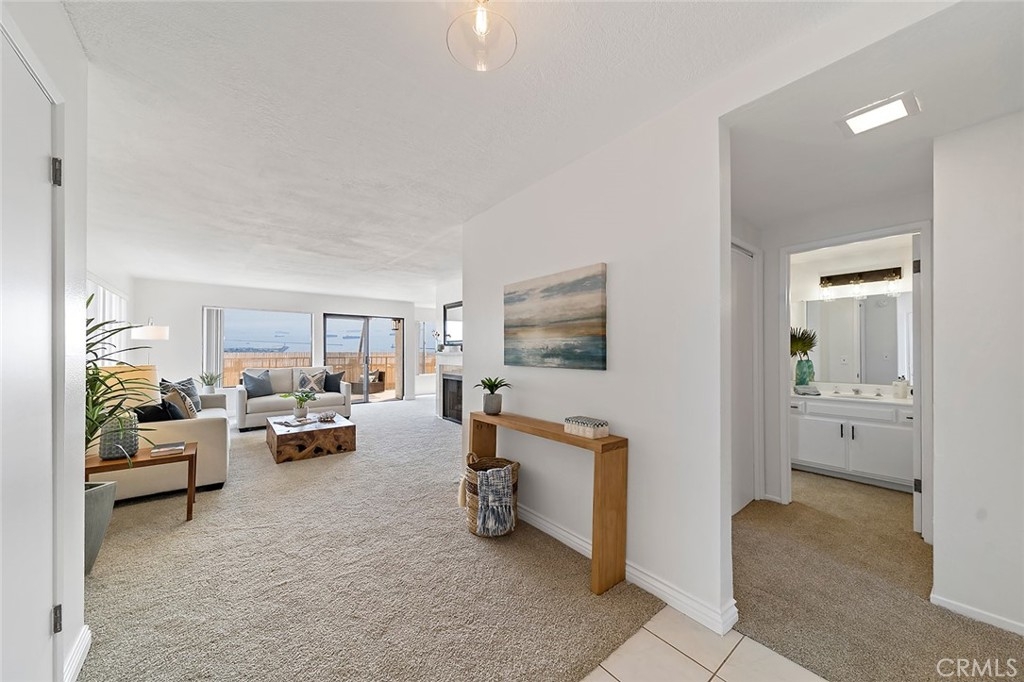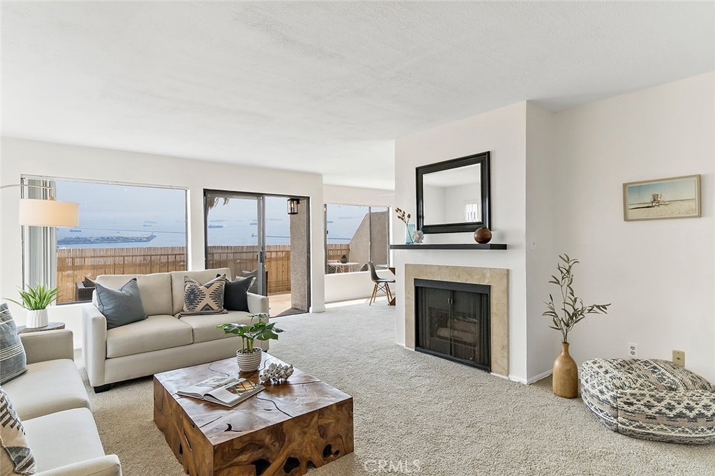 Enjoy living the Coastal Lifestyle in this sophisticated 2-bedroom, 2-bath end-unit condo with incredible Ocean and Harbor views. Situated on an upper floor, this location lends to greater privacy and magnificent sunrise views of Catalina Island, the Vincent Thomas Bridge and Cabrillo Beach. Plus, the views at night are stunning! As you enter, you are greeted by a light & bright, open living area which includes a fireplace and wet bar. Feel the ocean breeze through the large slider in the Living Room which leads to a spacious balcony overlooking Coastal San Pedro and the Pacific Ocean. Large Master Bedroom with lots of natural light and en-suite bathroom. Spacious 2nd Bedroom with a generous sized closet and a 2nd Bathroom located down the hall. The entire condo is freshly painted with brand new carpet and fixtures throughout. Convenient separate laundry room located inside unit. Easy and secure, gated parking with 2 appointed parking spaces (w/ storage). Pet-friendly building. Outstanding investment property with long term rental history. This is a must-see as it won’t last long!