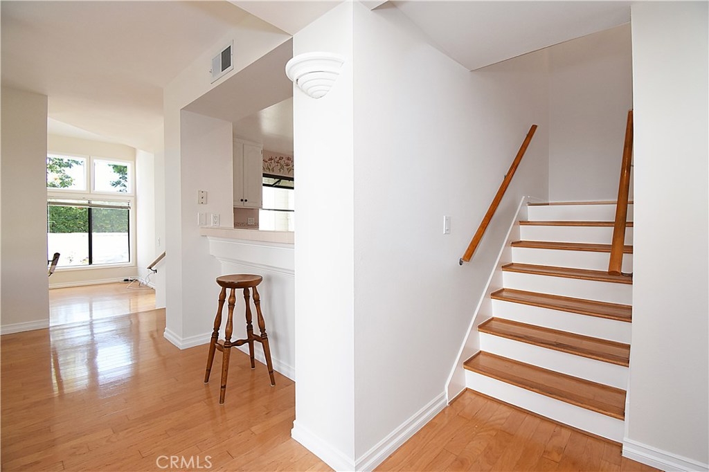 Located in the "Bay Watch" gated community is this 3 bedroom/3 bath home. It is located at the end of the first cul de sac not far from the from the complex entry. There is guest parking nearby. As you walk along the path at the end of the cul de sac, there is a separate entrance into the unit. The entry living area includes a large kitchen with breakfast bar, a separate dining area, and family/living room. The high ceilings and lots of windows overlook the garden/patio and give it lots of light. To the right of the entry is the laundry, half bath, and 2 car garage. The garden/patio overlooks the community pool and spa area. Upstairs is the master suite with vaulted ceiling and walk-in closet. There is also a space that could be an office, sitting area, or studio. At the end of the hall are the other 2 bedrooms and bath. Freshly painted with hardwood floors. Easy to show. Check out the virtual tour by clicking on the VT icon next to the main photo or copy and paste this link into your browser https://www.seetheproperty.com/u/343884