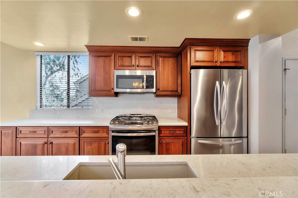 Welcome to 1150 West Capitol Drive #96. This gorgeous 2 bed, 2 & 1/2 bath and a den that could be a third bedroom and is located in San Pedro, CA. Step into the home and enter into the second-story living area. This floor features a spacious kitchen with all stainless steel appliances and beautiful wooden cabinetry, as well as the main dining area with a sliding glass door leading you out to the 1st of multiple balconies. The main living area is large, with plenty of windows allowing beautiful natural lighting, a fireplace, built-in cabinets, a wet bar, and a sliding glass door leading you out into the enclosed backyard. Head upstairs, where you’ll find both of the ensuite bedrooms. Both bedrooms boast spacious floor plan, large closets, and the primary suite has a patio overlooking the community pool. You'll find direct access to your two-car garage on the lower level of 1150 West Capitol Drive. Other prominent features of this home include plantation shutters, a separate laundry room, community amenities, and a backyard with plenty of room for a summertime setup! This home absolutely will not last long!