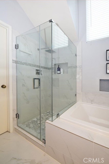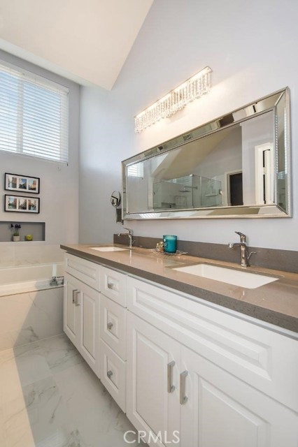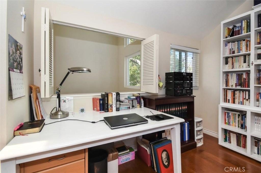 This updated town home is located in the well planned, security gated Bay Watch community. Enjoy all of the luxuries of a single family home without the maintenance. Open kitchen concept updated with beautiful quartz counters, custom tile back splash and Bosch dishwasher. There is also a breakfast nook which leads to a deck/patio area. The separate dining room offers custom cabinets. The living room offers a wood burning fireplace and leads to the sun-drenched patio. The top level offers 2 master suites. The master suite boasts vaulted ceilings, a walk-in closet and a private office/den with custom built in bookshelves. The spa-like bathroom is truly luxurious with its quartz counters, rain fall shower and custom vanity. This end unit offers access to the patio from the side yard making it perfect for summer BBQ's and gardening. The lower level features a separate laundry room with storage and a direct access to the attached two car garage. Other features include new windows, plantation shutters, recessed lighting and smooth ceilings. This gated community also features a pool area and spa for all residents. Conveniently located near shopping, public transportation, and easy access to 110 freeway. This unit is located close to guest parking. You wont want to leave this private retreat!