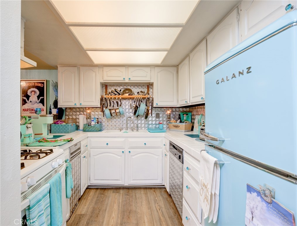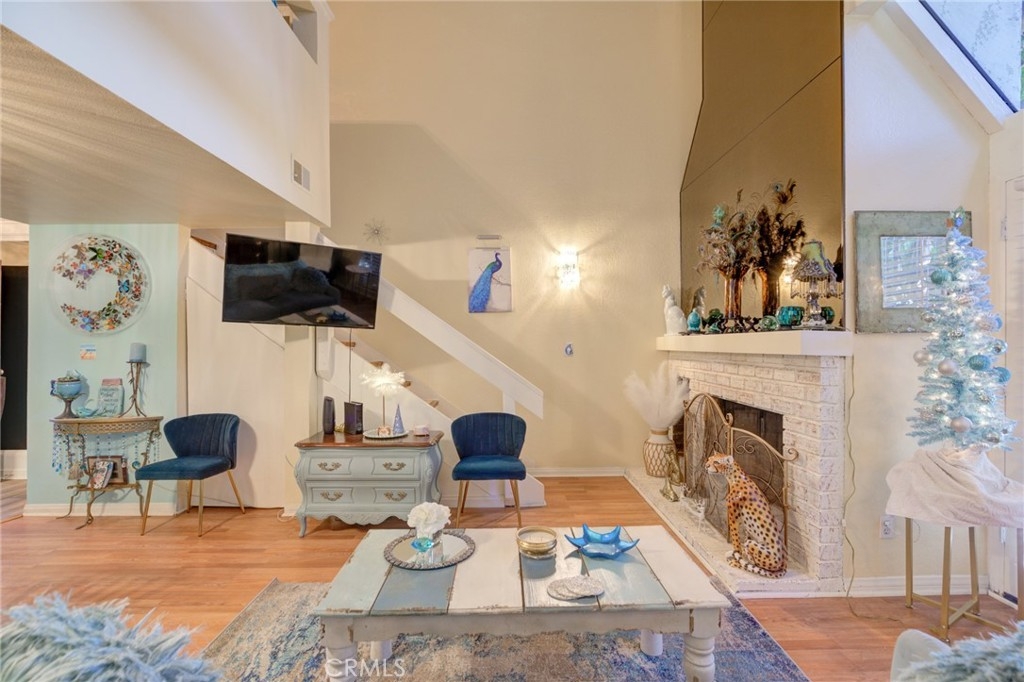 Great 2 bd 2 ba Condo with a loft is located in desirable Vista Del Oro area of San Pedro. This 2 story end unit has kitchen, dining area, living room, cozy fireplace, bedroom, full bath and laundry area with gas hook ups downstairs. Upstairs is the primary bedroom with full bath and separate shower, walk in closet, loft and a balcony. There is a tandem parking space for 2 vehicles and a large storage locker in a gated subterranean garage.