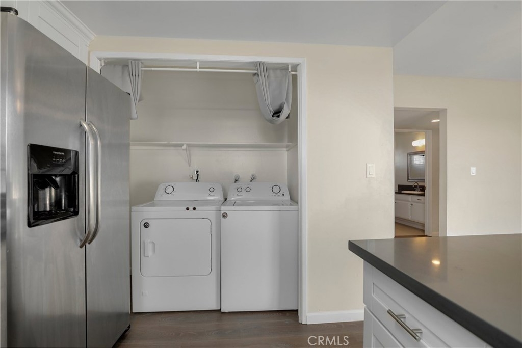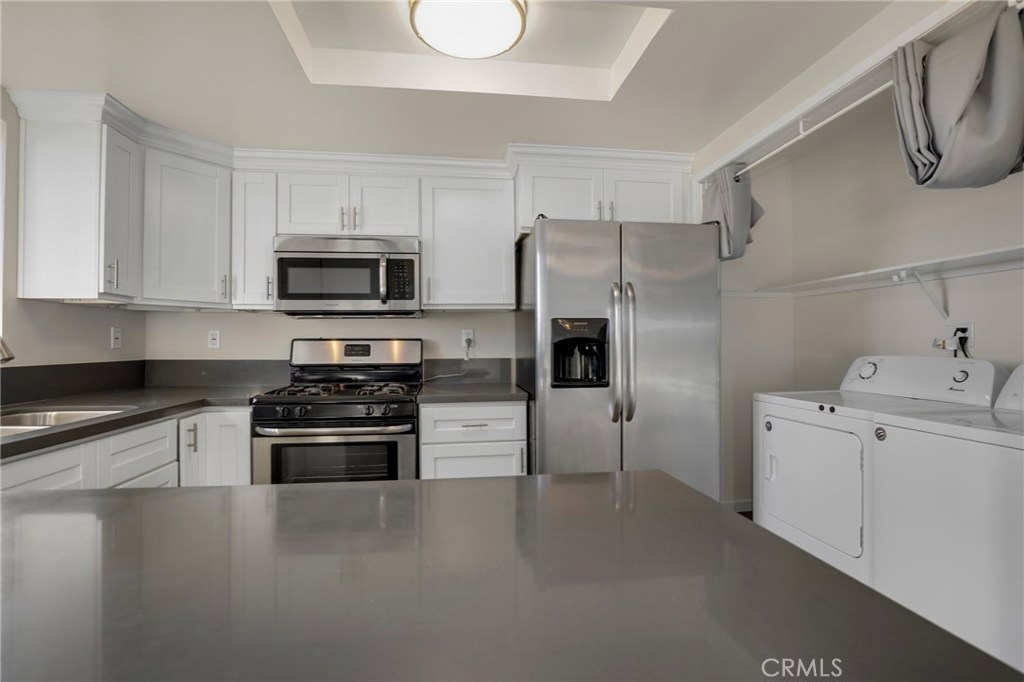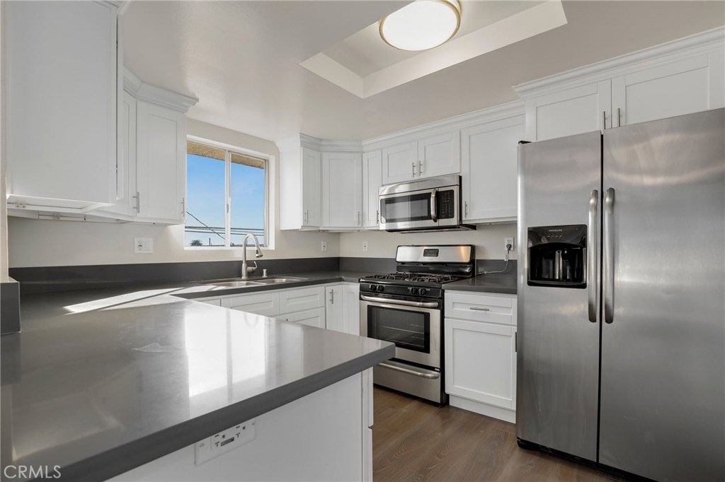 Remodeled top-floor condo in desirable Vista Del Oro area with views of the harbor and mountains. NEW CARPET INSTALLED AND LOWER PRICE!! Kitchen has been updated with new white shaker cabinets, quartz counter tops and stainless steel appliances. Laundry is conveniently located inside the unit with washer and dryer included. Kitchen opens to the dining room, living area, and balcony. Both bedrooms have plush carpeting, remote control fan lights and mirrored closet doors. Master bathroom features newer tile shower and new quartz counters. Nice floor plan, 2nd floor entry. Private 2-car garage with storage. Close to parks, schools, restaurants and shopping. Ready to move in! Take your Virtual Tour here: https://my.matterport.com/show/?m=Ab5xeF84C1T&mls=1