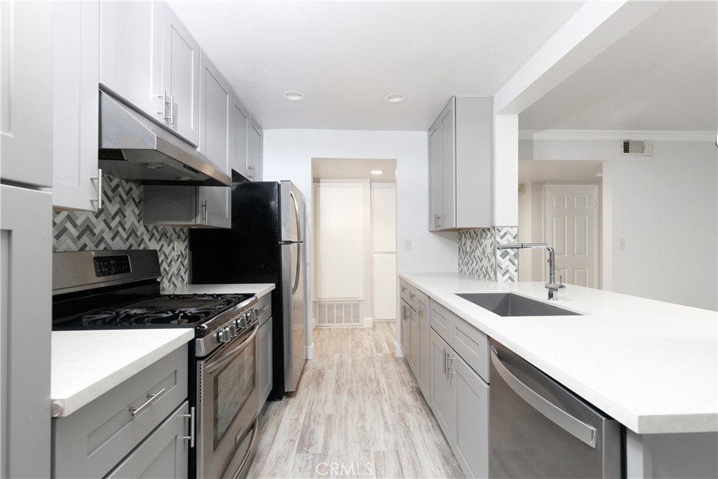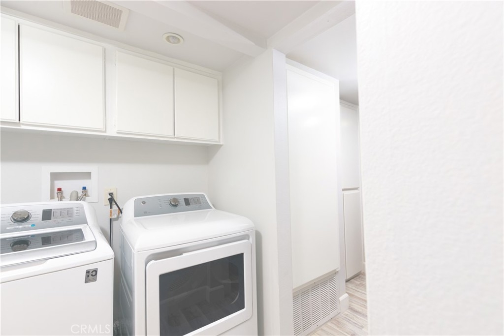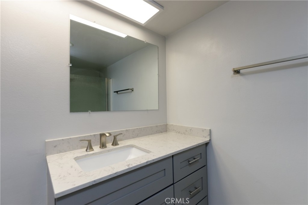 This recently renovated unit is is just minutes from the coast in South Bay. Situated just one flight up from ground level, the first floor unit opens to kitchen and living area. Kitchen comes wit custom countertops, new cabinets with slow close drawers, single basin sink and new faucet. New dishwasher. Newer windows. Two bed, two bath first floor unit! One master bedroom with ensuite restroom on one side with the guest bedroom and bathroom on the other. Guess bathroom refinished shower stall with new vanity, fan, and dimmable lighting. Master bathroom has upgraded single valve shower, new toilet, new vanity with sink and faucet. Spacious living area with open floor plan kitchen. New laminate flooring throughout unit. Washer dryer in unit with new exhaust fan above. Community has courtyard area that units back into. Dog run in back of unit. Two assigned spots in garage underneath building, spots are not next to each other. HOA may have pet number restrictions, check with HOA. Brand new AC.