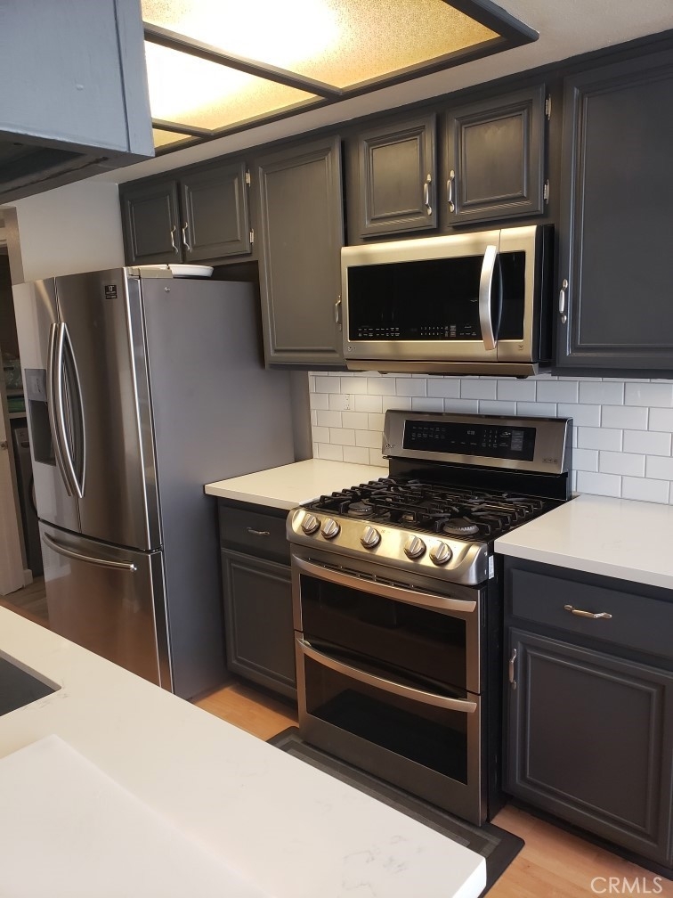 Look no further. This beautifully upgraded condo home is move-in ready. The upgraded kitchen welcomes you with a stainless steel refrigerator that's less than a year old. The stainless steel double oven slide in range is perfect for the home chef who wants dinner and dessert done at the same time. The new white quartz countertops are right on trend along with a beautiful white subway backsplash. The stainless steel single undermount sink is ideal for cleaning up big pots and pans. Pantry space is located right off the kitchen as well. The home is perfect for entertaining with it's open concept layout. The gas fireplace was updated with beautiful tile and a handmade natural wood mantle. New hardwood look alike tile was recently installed in the laundry room and both bathrooms, giving these rooms a beautifully upgraded look while being water resistant. Both bedrooms can be set up as masters given they both have ample closet space with built in shelving and private bathrooms. Newer A/C unit was recently installed for those hot summer days. Amenities include a sauna, rec room and pet run. Two parking spaces per unit and guest parking close by. Close to shopping like Trader Joe's, Albertsons, a theater, Marshalls, In-n-Out and the soon to be completed San Pedro Public Market. Pictures to come.
