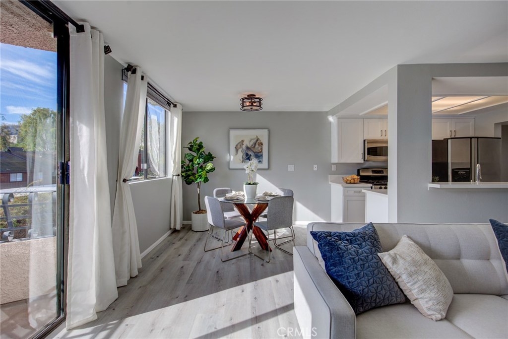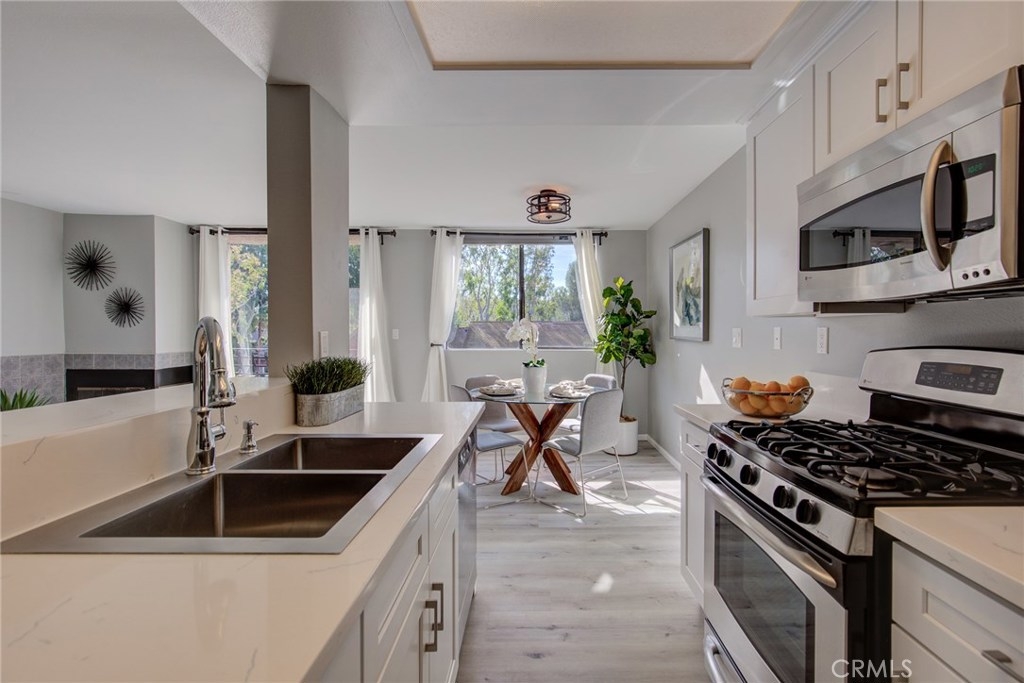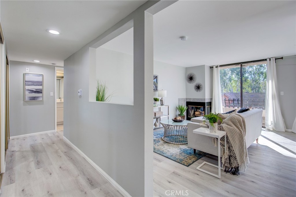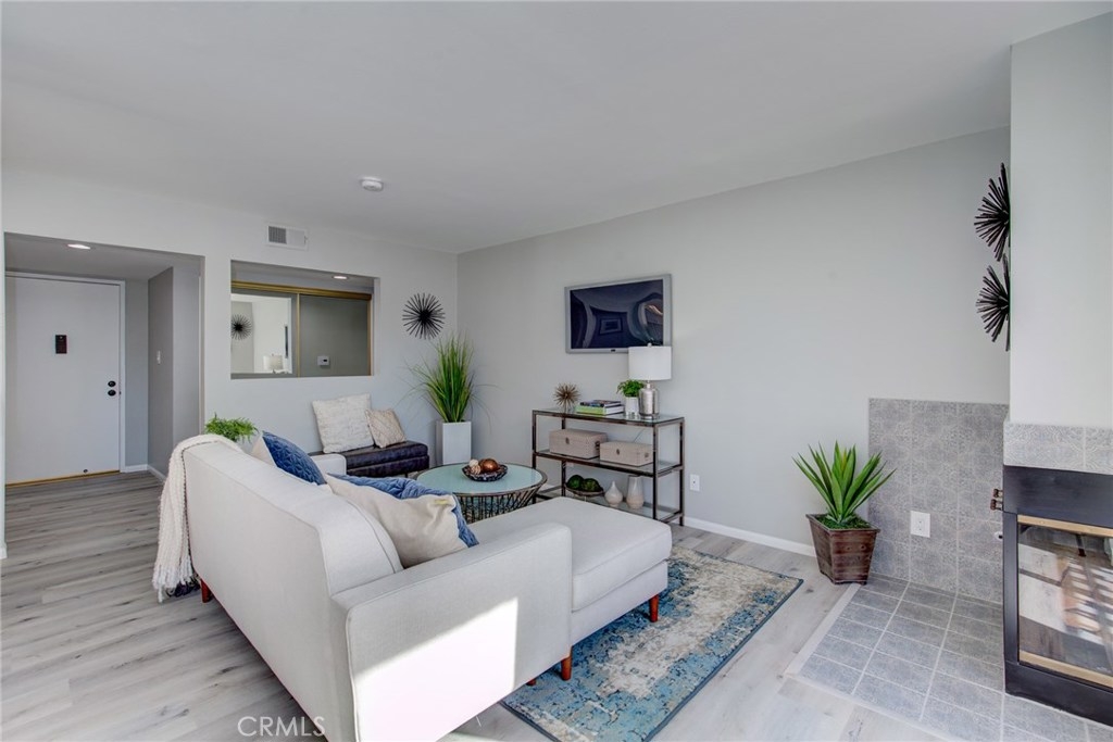 Welcome to your new home! Owner has fully renovated the interior making this unit truly turnkey. Starting with the kitchen, you'll find quartz countertops, shaker style cabinets and stainless steel gas appliances. Just off the kitchen there is a laundry closet with cabinets and a washer and dryer. Moving into the living room there is a wood burning fireplace, a sliding glass door that leads to a small balcony which offers tree top views to the south allowing lots of sunlight to flow in. Just off of the balcony there is a dining area that is the right size for enjoying meals while gazing out the large window. Heading down the hallway, you'll notice two large closets providing adequate storage space. The bathroom features tile flooring, along with a shaker quartz vanity and large wall mounted mirror. The bedroom is nice and roomy with a window overlooking those treetop views with lots of light coming in. This second floor corner unit is super quiet, with an open floor plan and is fully equipped with central heating and air conditioning. Casa Verdes Estates has elevator access to parking with 2 assigned tandem spaces, community room, sauna, exercise room and even a dog run. This community is situated at the border of Rancho Palos Verdes and is within easy access to shops, restaurants, parks, Long Beach and 110 Freeway. Located right next door to the future Point Vista development.