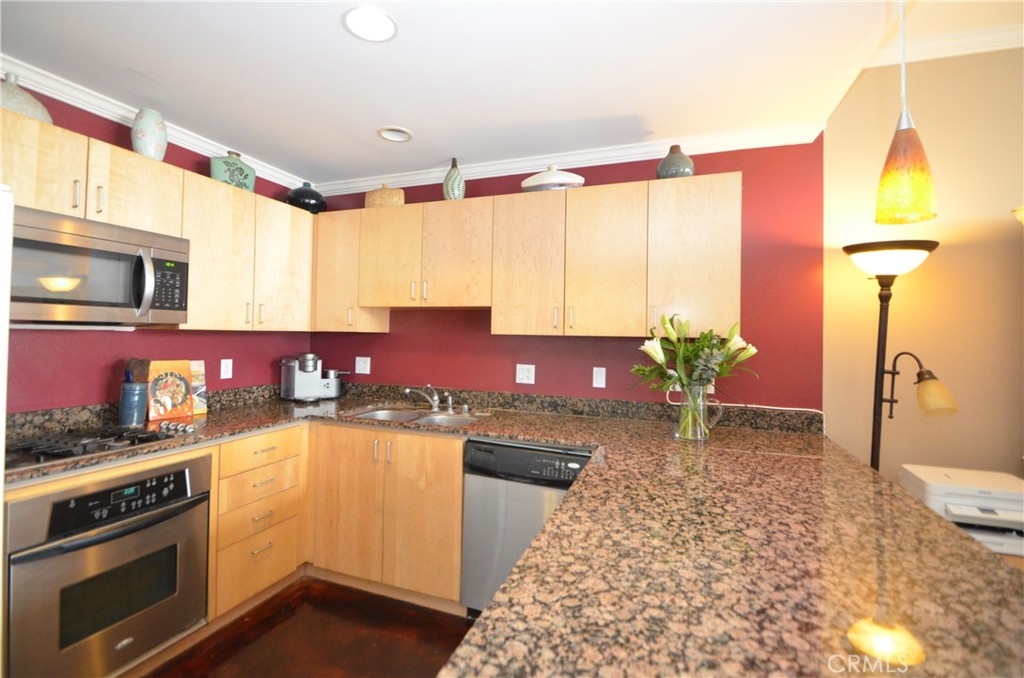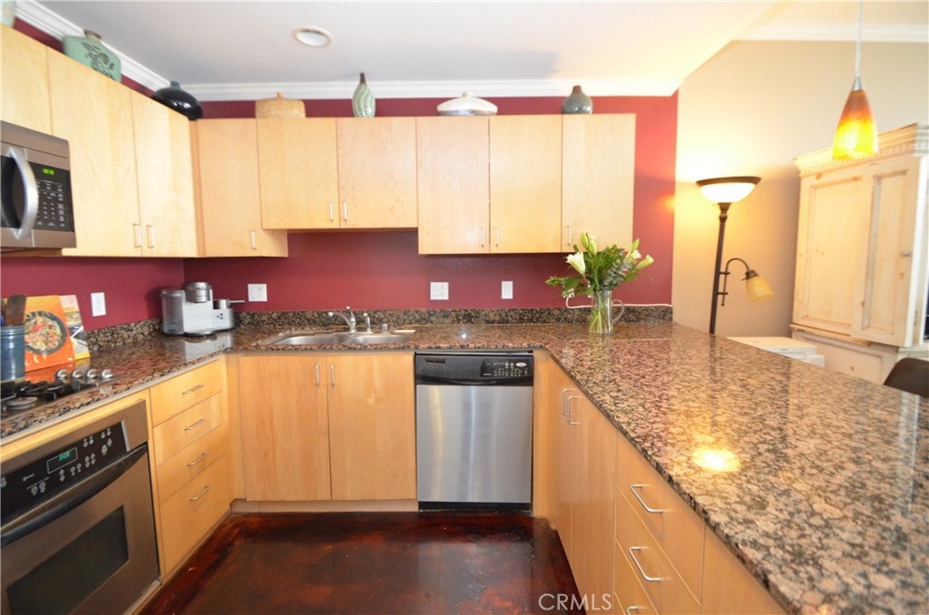 Modern Lifestyle at the LA Harbor waterfront and the Historic San Pedro downtown. This turn-key extra spacious 1bedroom/1bathroom/750sf living condo is ready for you! Steps away from the soon to be completely renovated waterfront featuring shopping, dining, art centers, and "active" lifestyle this condo is perfect for the ambitious at heart! The condo offers high 9+ ft ceilings, large dual pane windows which are virtually floor to ceiling height, walk-in closet in the bedroom, chef's kitchen with stainless steel appliances, large granite countertops in kitchen and bathroom and stained concrete floors. This unit faces the beautifully lush courtyard... a truly uniquely positioned location. The building features a private residential entrance, lobby with 2 high-speed elevators, landscaped courtyard with 2 BBQ grills and patio furniture, a directory guest access system, and 2 deeded parking spaces with EV charger.This property has lots of natural light and the essence of ocean elements in every direction you look. Perfect for the discretionary at heart buyer looking for the unique oceanfront property that offers an active lifestyle. HOA includes: Water, Trash, Maintenance, Daily Courtyard cleaning including 2 BBQ's, Secured Community, Dog Park/Walk area.