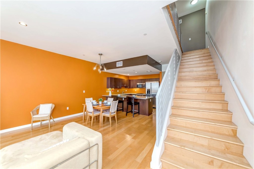Luxurious urban living at The Centre Street Lofts in the heart of San Pedro's Arts District. Beautiful 2 bedroom, 2.5 bathrooms plus den & 1,710 SF of living space condo is located in the best location of the complex. This is one of 10 "town-house style" condos in the building and only one of six units with no one above or below. This spacious 2 level condo features an open floor plan with a modern kitchen with European style cabinetry, granite counters, stainless steel appliances, a breakfast bar, and hardwood flooring. The light and bright living room complete with floor to ceiling windows and sliding door, 9+ ft. high ceilings, recessed lighting, a private balcony, and views of amazing views of the main channel of the Port of Los Angeles. Master bedroom with large windows which overlooks the amazing views of Harbor waterfront, and en-suite bathroom with soaking tub & separate shower and a spacious walk-in closet. The second bedroom features a walk-in closet, a full bath, and overlooks the beautiful courtyard. The courtyard with BBQ area is located right in front of this unit which is great for entertaining friends and family. This loft has been pre-wired for seamless integration of high-speed computer broadband, in-house networking, telephone, TV reception, and satellite. Additional features include in-unit washer & dryer and 2 side by side parking spaces. Private underground parking. The turn-key home is truly a must-see!!