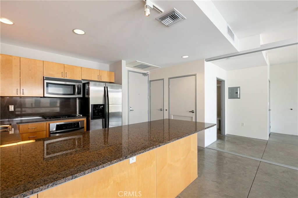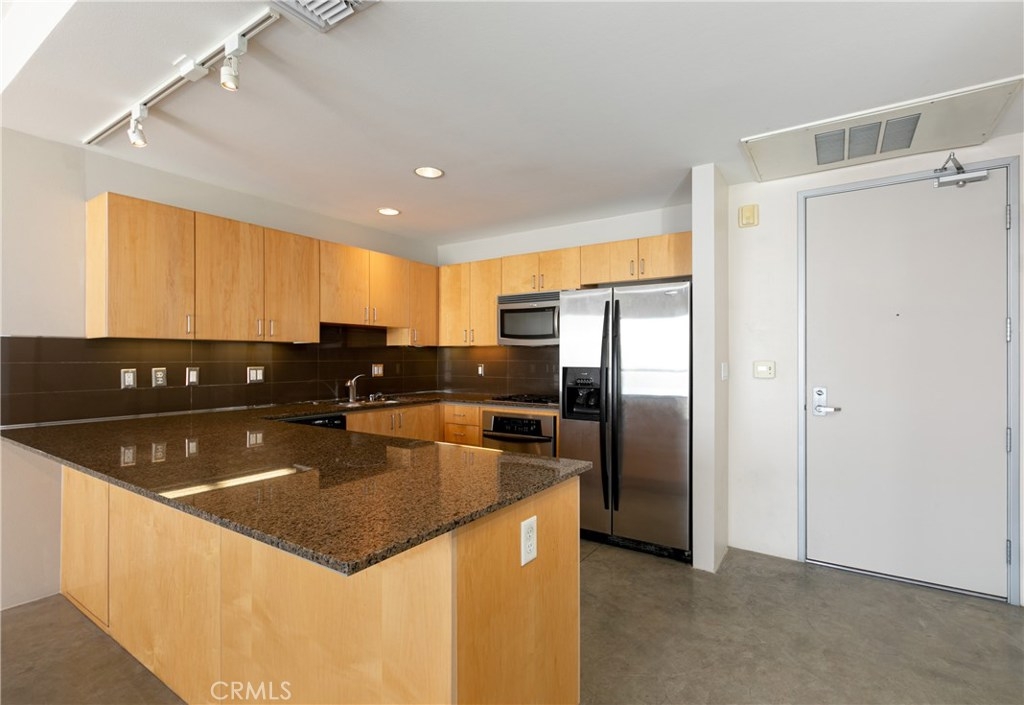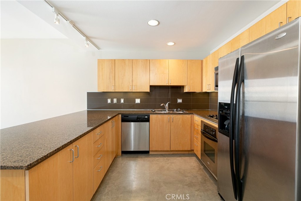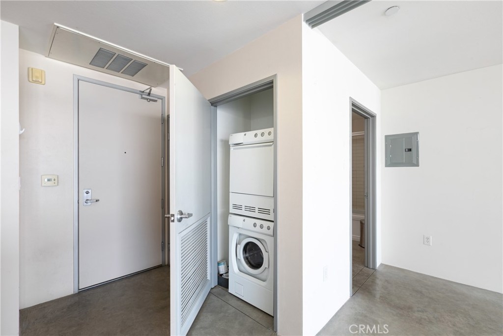 Enjoy an active and vibrant lifestyle in the heart of downtown San Pedro’s art District. Just 2 blocks to the LA Waterfront, and easy access to the freeway, the new bridge to downtown Long Beach and the Vincent Thomas Bridge. Short drive to Cabrillo beach, Ports 'O Call, and plenty of shopping centers close by. This chic large 1 bedroom, 1 bathroom loft is contemporary in style with 764 sq.ft. and an abundance of natural light. Being in the midst of San Pedro you can enjoy shopping, dining, and seasonal festivals. The condo offers high 9+ ft ceilings and dual pane windows that almost stretch from floor To ceiling. Long breakfast bar with granite countertops for easy entertaining. Central AC/heat, washer and dryer in unit, Stainless steel appliances, stained concrete flooring, large walk-in closet and a full length Frosted sliding door that separates the living area from the bedroom. Enjoy the serene Courtyard from your large windows. The building features a private residential entrance with 2 high-speed elevators, landscaped courtyard with 2 BBQ grills and patio furniture on level 3. Your furry friends will enjoy the attached dog walking area. There is also a directory for user friendly guest access and 2 deeded parking spaces that are Side-by-side on level 2. This property has lots of natural light.