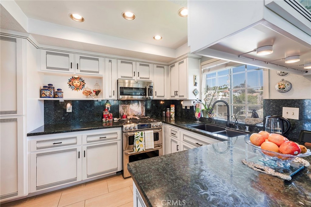 This Stunning Vista Del Oro 2 bed/2 bath Condo has been remodeled to perfection 4 years ago!. This corner unit with elevator access is perfectly located on top floor with NO common walls. Some ocean view from Living Room and canyon view from the balcony. The interior amenities include: A completely remodeled kitchen, with custom white cabinetry and sliding drawers, plantation shutters, beautiful Pergo flooring, stainless steel appliances, recessed canned LED lighting, custom paint throughout. Don’t miss the opportunity to purchase this Stunning Condo. Gated underground parking with 2 side by side parking spaces and storage.