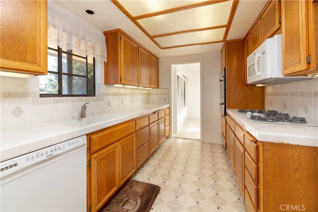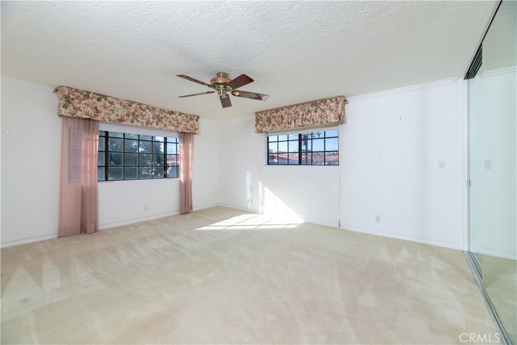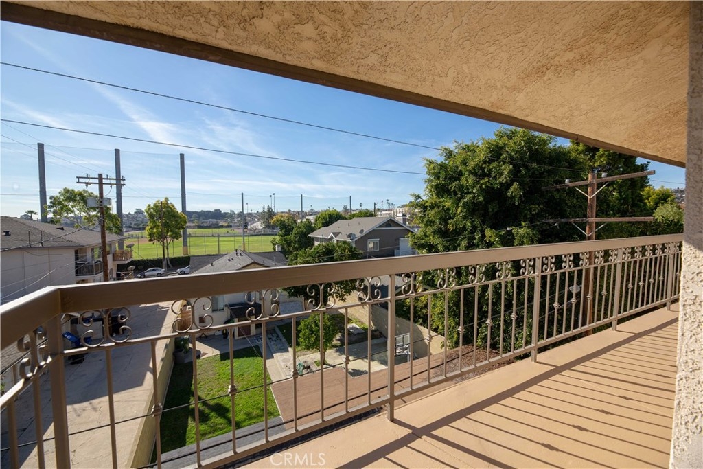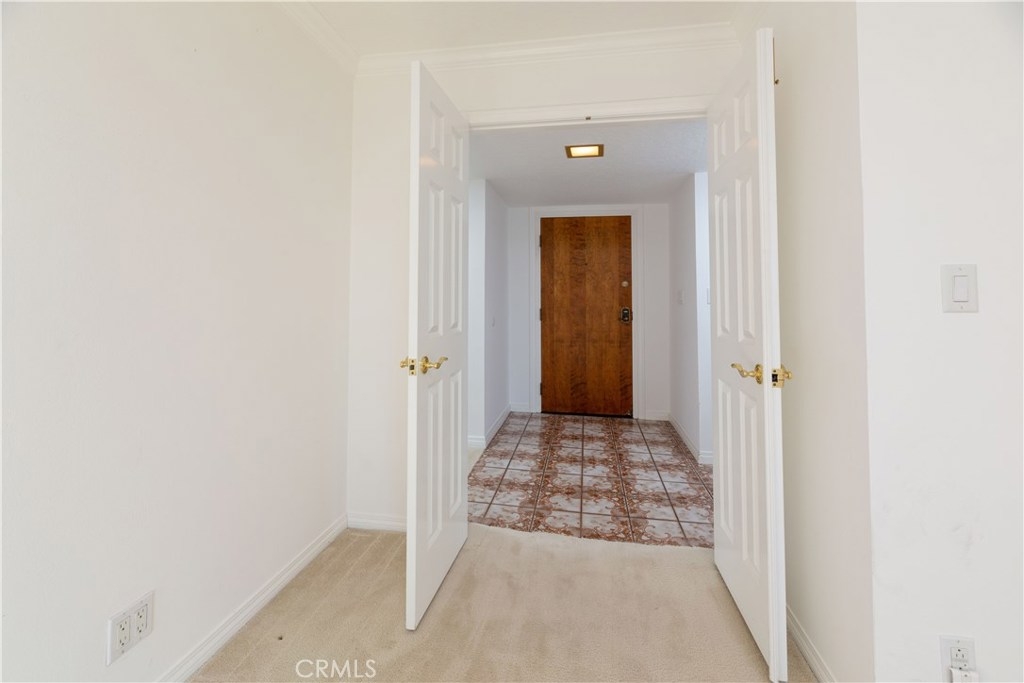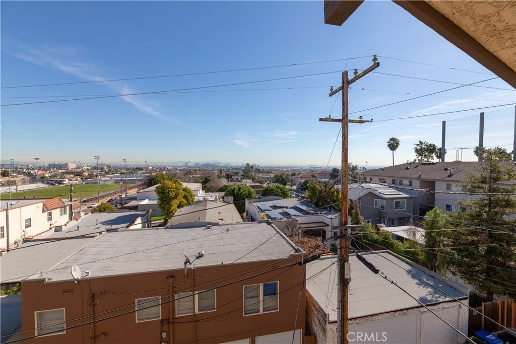 Beautiful penthouse condo; only 2 units on the top floor of this spacious condo located in the Vista Del Oro neighborhood of San Pedro. This end unit is not only spacious but also has a large balcony. The large entry to family room and formal dining area. Legally this is a 2 bedroom, but it has a large den that can be used as a 3rd bedroom; master has it's own bathroom, vanity area. There are 2 full bathrooms. The kitchen has double ovens and opens to a living room with fireplace. On the other side of the kitchen there is a living room with a dining area and wet bar. The unit also features a laundry room in unit and washer and dryer are included. The 1,841 sq. ft of living space is on one level. For those looking for a small complex this is it! It has only 8 units in the building. All VA buyers are welcome; complex is VA approved. Main features: Central Heating & Cooling. It has two balconies with ocean, mountain, and city lights views from both balconies and the living room. The south balcony is accessible from the formal dining room and the second dining area. The north balcony is accessible from the living room. Plantation shutters in living room and formal dining room. All closets have interior lighting. Master bath has a tub/shower and a second individual shower. Double sinks in the master bath. Double door entry to master bedroom and den. Interior door hardware is brass by Baldwin. Wet bar with hot & cold water. 2 Total parking spaces, side by side.