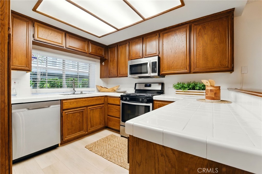 Welcome home to 1406 Brett Place #112! This bright and open end unit condo features 3 spacious bedrooms and 2 well appointed bathrooms. The kitchen includes stainless steel appliances/sink, a garden window overlooking the courtyard, and a serving counter that opens to the dining area and living room. The living room offers a cozy gas fireplace and opens to a covered balcony nestled among trees (This end unit floor plan includes the larger extended balcony). The primary bedroom boasts a private ensuite bathroom with dual sinks, granite counter top, tub, and shower. The secondary bathroom is upgraded with granite counter tops and tile shower. Additional highlights include fresh paint, brand new flooring, new large water heater, an additional outdoor storage closet, and an in-unit laundry closet with stackable washer and dryer. Two underground parking parking spaces with elevator access are included in the secure gated garage with remote access. Parking is easy with no stairs option from car to your front door via the elevator. The community is beautifully maintained with lush landscaping, streams, waterfalls, elevators, and garbage chutes — plus a heated pool and spa with showers and bathroom. The building is secured with gated access and trash service is covered by the HOA. Conveniently located near multiple shopping centers and restaurants.