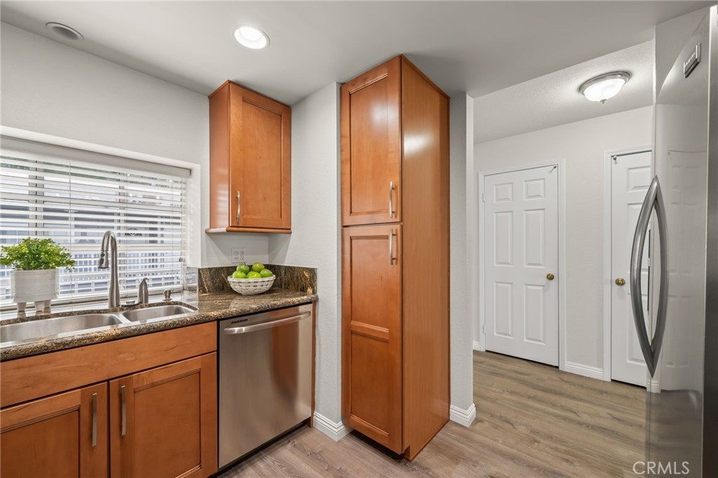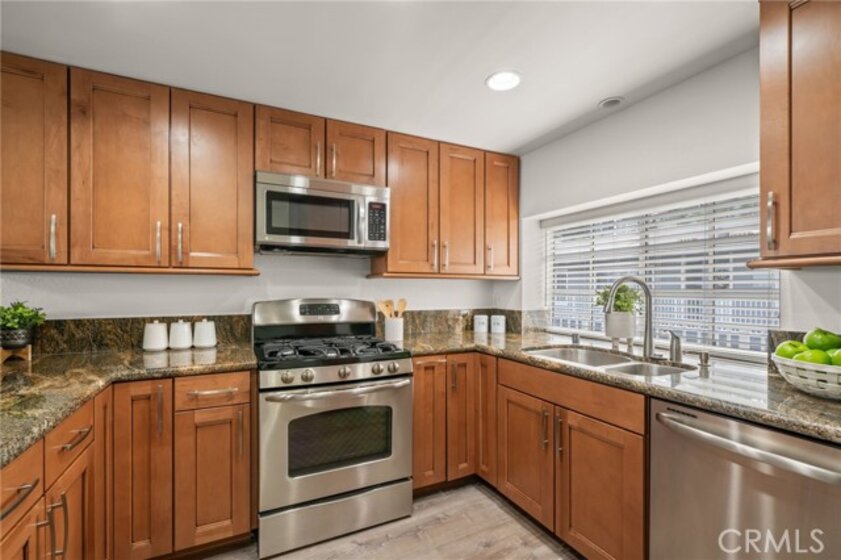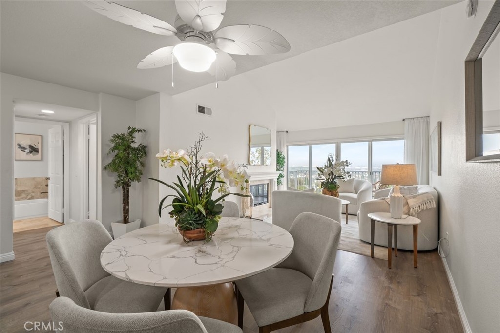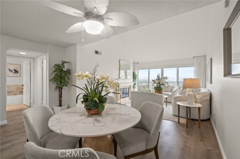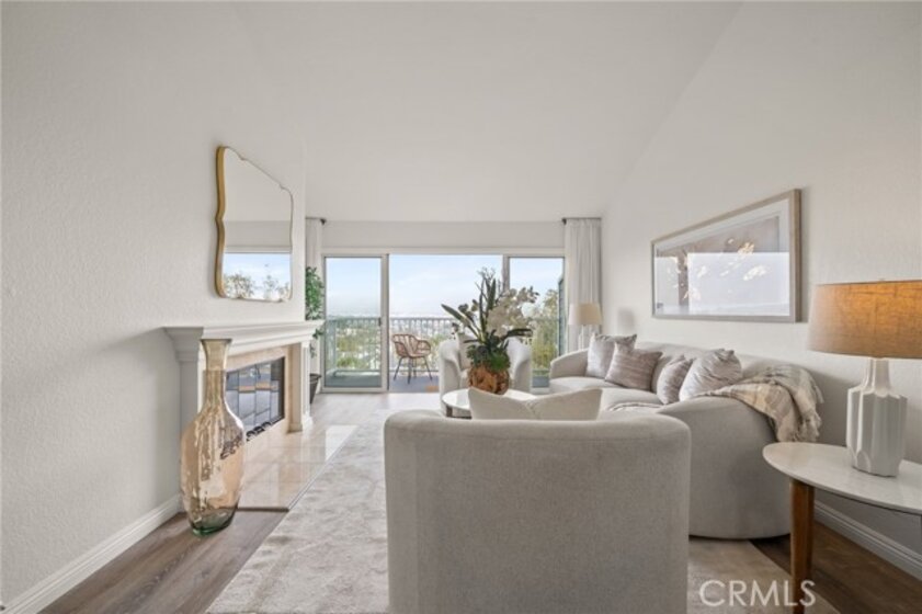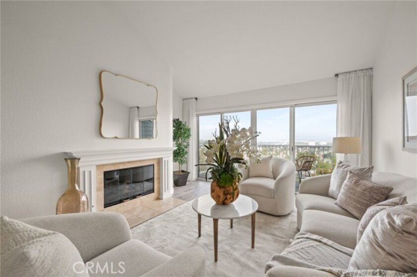 Welcome to 1410 Brett Place, Unit #334! A top-floor one-bedroom, one-bath residence offering panoramic views of the harbor, mountains, and city skyline. This light filled condo with high ceilings features an open concept floor plan designed for both comfort and style. The kitchen is appointed with granite countertops, newer cabinetry, stainless steel appliances, and recessed lighting. The living space offers a cozy fireplace and access to a balcony thru sliding glass doors perfect for enjoying the views and fresh air. The oversized bathroom has dual sinks with a granite countertop, elegant travertine flooring, a separate soaking tub, and a frameless glass-enclosed shower. A louver closet in the bathroom contains a washer-dryer single unit and storage shelves. Additional highlights include close location to elevator and stairs, central air and heat, an exterior storage closet, easy elevator access, and two side-by-side parking spaces, conveniently located next to the complex elevator, in the secure subterranean garage. The beautifully landscaped community offers tranquil running streams, waterfalls, a pool, and a spa, creating a resort-like atmosphere. Ideally located near shops, restaurants, theaters, gyms, and freeway access. Don’t miss this opportunity to own a top-floor condo with incredible views and amenities.