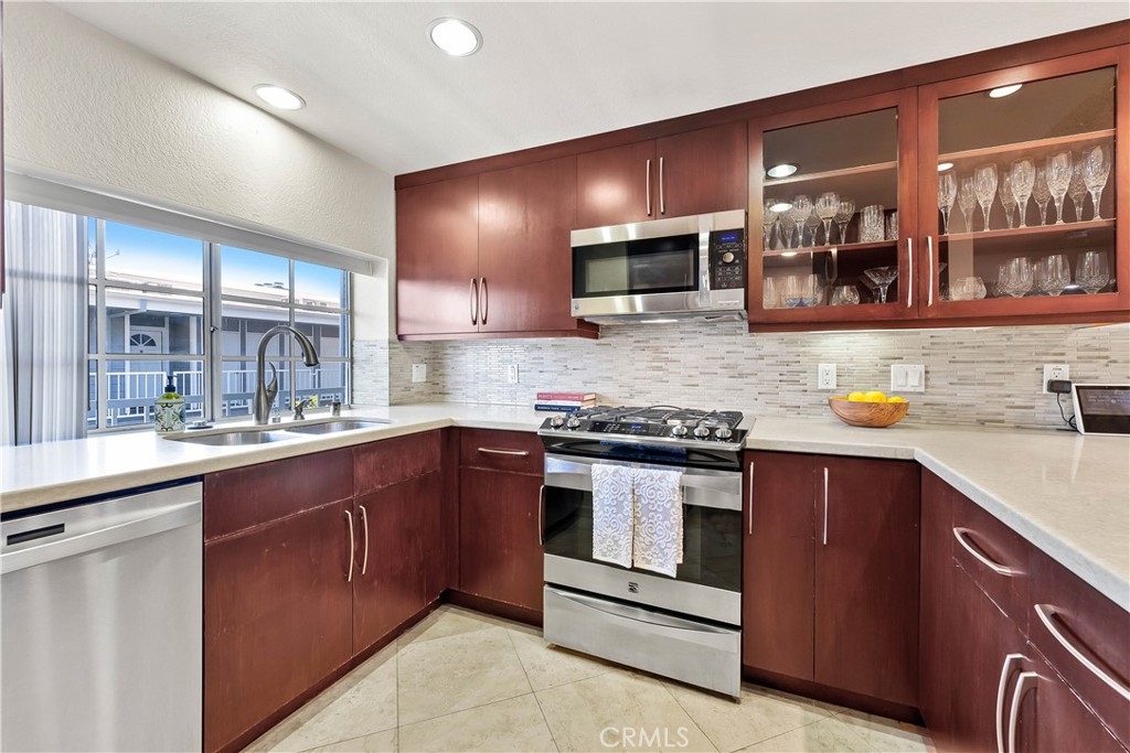 Welcome to the picturesque community of Harbor Gate, a private gated community with amazingly manicured landscape surrounded by colorful succulents, and numerous waterfalls running in the background. This is the home that makes you feel like you're in your private sanctuary all year long!!! Fall asleep to the sound of water flowing and wake up to a beautiful turnkey home with two generously sized bedrooms and two full bathrooms. The semi-open concept floor plan is perfect for entertaining and affords abundant light throughout. The master bedroom is at the northwest side of the complex so its quiet and offers an ensuite bathroom plus two closets and vaulted ceilings. The second bedroom currently serves as an office and has great morning light with an adjacent bathroom that sits across from the laundry room with indoor stackable washer dryer. Get to cooking in the beautifully updated kitchen with stainless appliances and a breakfast bar that works as a landing for intimate dinner parties. The living room has vaulted ceilings, a properly appointed fireplace. Sliding patio doors lead to a nice size balcony for BBQ's and morning coffee with a view of the lush landscape and waterfall. Situated on the top floor allows for ultimate privacy and tranquil living!