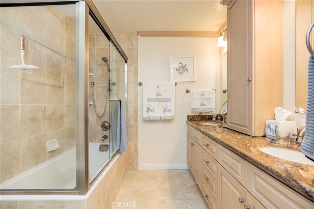 Situated in a PRIME LOCATION within the resort-style community of Harbor Gate, this bright and spacious 2 bedroom, 2 bath condo is move-in ready. This beautiful one level unit, located on the first floor, has an ideal layout. The sunny kitchen has upgraded appliances, granite countertops and recessed lighting. It opens to the spacious dining and living area with a marble fireplace which leads to the private balcony with a peek a boo view of the harbor lights and bridge. The guest bedroom is conveniently located next to the recently updated 3/4 bathroom, which leads to the laundry center with a stackable washer/dryer and the spacious main bedroom and its beautifully appointed master ensuite. The combination of tile and wide plank wood laminate adds to the airy, spacious feel. Behind the property is a dedicated locked fire road so no vehicles are allowed, which makes for a very quiet unit and the convenience of being located near the elevators and stairs to the subterranean parking makes it a rare find!