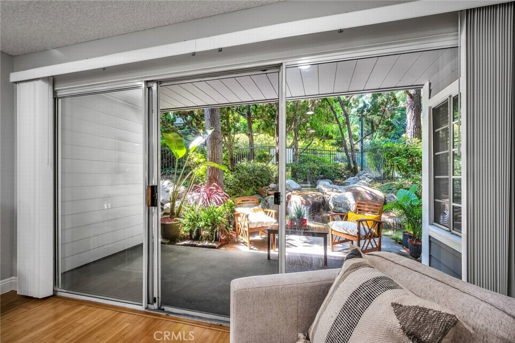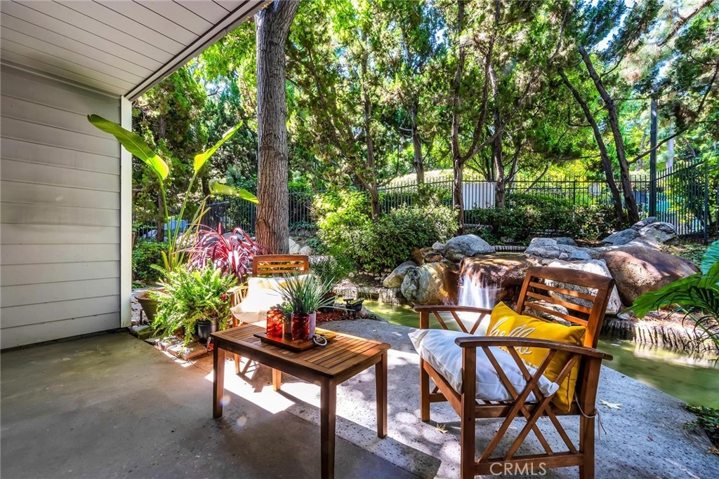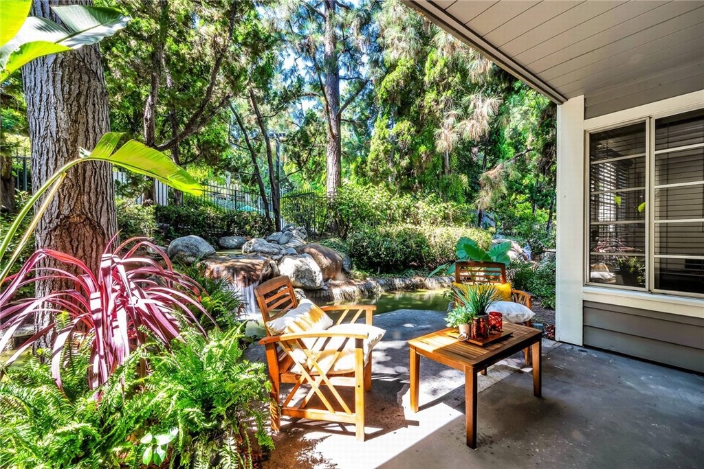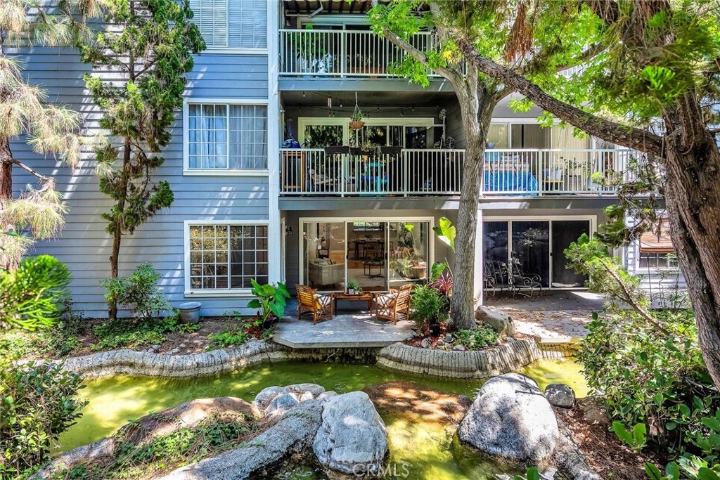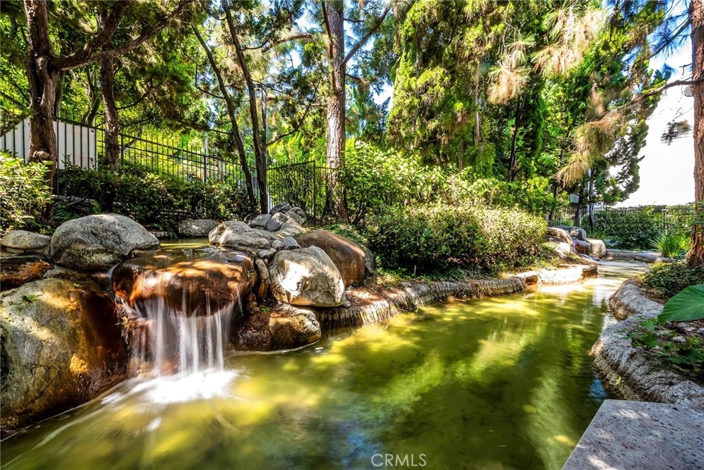 One of a kind! Live with the scenery and sound of waterfall/creek. Feel the tranquility and peace you rarely find anywhere. Step inside to your left is an efficient kitchen with bay window, granite counters, stainless appliances which opens to spacious living room with bamboo floor and fireplace. Out the large sliding windows, the tranquil patio facing the waterfall and creek. Behind it is the community pool/spa area surrounded by lush greenery for privacy. To your right is a good size guest bedroom, stackable laundry closet, 3/4 guest bathroom. Private master suite has two wall closets, a dual sink full bath, view/sound of waterfall and creek all day long. Central A/C, new paint & recessed lighting throughout, new carpet in both bedrooms. Assigned storage, two assigned subterranean parking spaces (not tandem), resort-like pool & spa area is just a few steps away. Up to two pets (dogs & cats) allowed - buyer to verify with HOA. Good access to shops, Trader Joe's, restaurants, movie theaters, parks, 110 Fwy, upcoming LA Waterfront. This rare find, a very special place is waiting for you. Don't let this opportunity slip away.