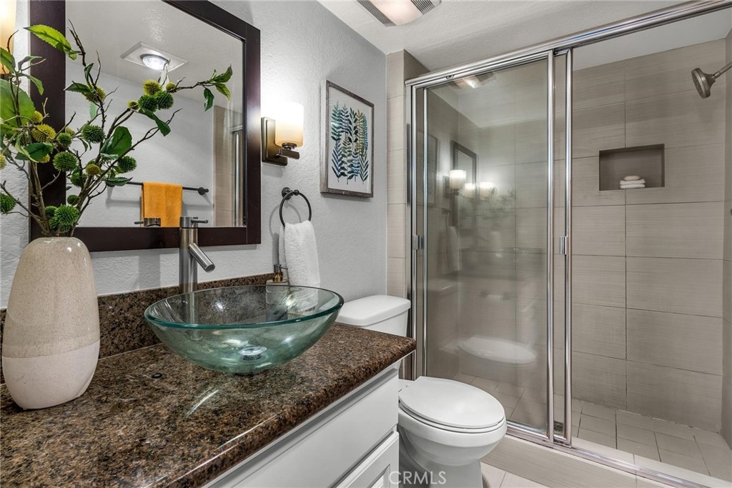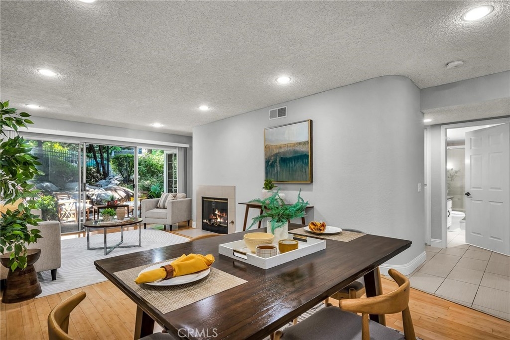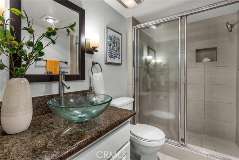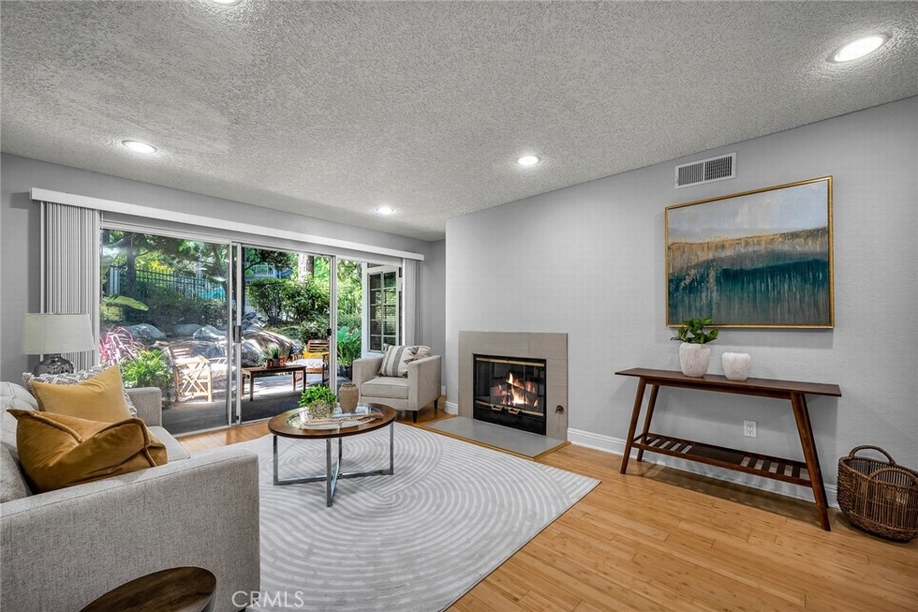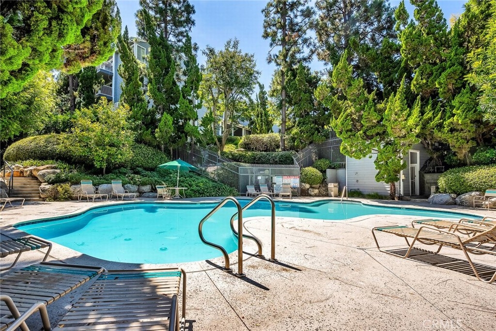 One of a kind! Live with the scenery and sound of waterfall/creek. Feel the tranquility and peace you rarely find anywhere. Step inside to your left is an efficient kitchen with bay window, granite counters, stainless appliances which opens to spacious living room with bamboo floor and fireplace. Out the large sliding windows, the tranquil patio facing the waterfall and creek. Behind it is the community pool/spa area surrounded by lush greenery for privacy. To your right is a good size guest bedroom, stackable laundry closet, 3/4 guest bathroom. Private master suite has two wall closets, a dual sink full bath, view/sound of waterfall and creek all day long. Central A/C, new paint & recessed lighting throughout, new carpet in both bedrooms. Assigned storage, two assigned subterranean parking spaces (not tandem), resort-like pool & spa area is just a few steps away. Up to two pets (dogs & cats) allowed - buyer to verify with HOA. Good access to shops, Trader Joe's, restaurants, movie theaters, parks, 110 Fwy, upcoming LA Waterfront. This rare find, a very special place is waiting for you. Don't let this opportunity slip away.