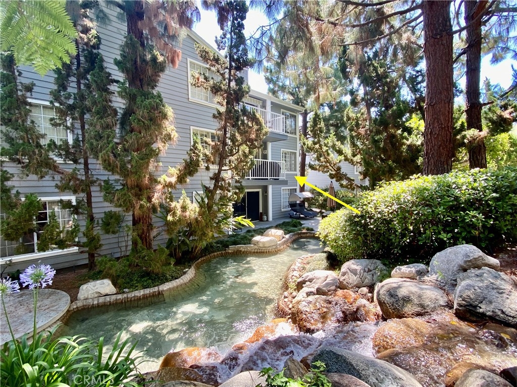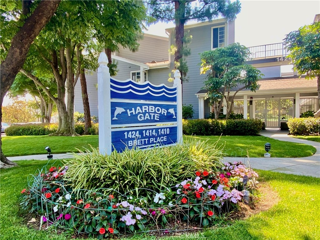Immerse yourself in the soothing sights and sounds of streams running outside of this immaculate 2nd floor end unit in Harbor Gate! The interior location of the 1414 Building provides a more serene feel. Easy flowing one level has an ideal layout with the heart of the space containing the Family Room w/Fireplace and balcony, Dining area & Kitchen surrounded by the Primary Bedroom w/Ensuite Full Bath and dual closets occupying the entire left side and two other Bedrooms and 3/4 Bath with hall laundry on the right. Both bathrooms have dual sinks and ample space for multiple people to use at once. The kitchen is bright and updated with GE appliance package including Stainless Steel Six Burner Stove/Oven, Microwave, Dishwasher and High-Gloss White Fridge with exterior water/ice dispenser. Shutters on Bedroom & Family Room windows providing privacy. Enjoy your private oasis on the balcony taking in the streams or on warmer days relax poolside or inside with the A/C dialed in. The unit includes 2 parking spaces in a secured subterranean garage with stairs or elevator access to complex. Easy drive to beaches, freeway, parks and conveniently located shopping centers with grocery stores, banks, fast food chains, movie theatre, gym, retail stores, outstanding restaurants and more!