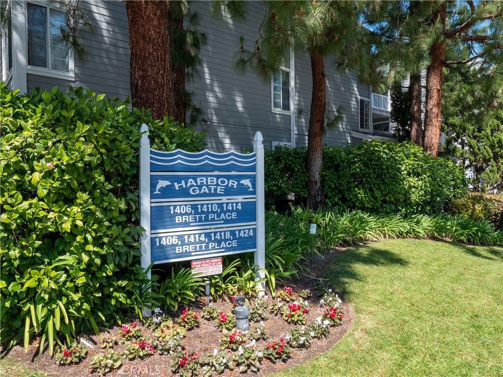 Beautiful and bright 3 bedroom / 2 Bathroom end unit on the first level of the highly desirable Harbor Gate Condominiums. This one-level end unit has a charming black and white entry which is complimented by the kitchen’s upper white cabinets and lower black cabinets. The chalkboard paint on the entry cabinet door makes for welcoming messages for you and your guests. Crown moulding, recessed lighting, and custom built-in wood bookcase and glass display case surround the gas fireplace making for an upscale and comfortable living area. Entertain your guests on the large patio outside your living room door or simply take in the natural beauty of the lush trees and beautiful landscaping that surround you. This one-level end unit has two additional windows in the large Master Bedroom and Bathroom suite making it extra bright and unique to other units. One bedroom with its custom built-in bookshelves could be used as an office. Easy access to your two parking spaces in the subterranean garage using the elevator or stairs are not far from your front door. The 1/4 mile walking trail within the complex is perfect for dog walking or a quiet stroll along the babbling stream and among the established vegetation and lush landscaping. The complex was given a multi-million dollar facelift in 2015 including a new roof, new landscaping, new siding, and a refurbished stream. This unit is a Must See! (Don't miss the VT (Virtual Tour): see the icon under the home page map.)
