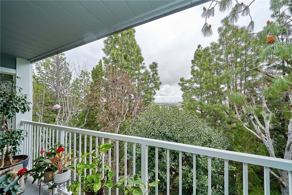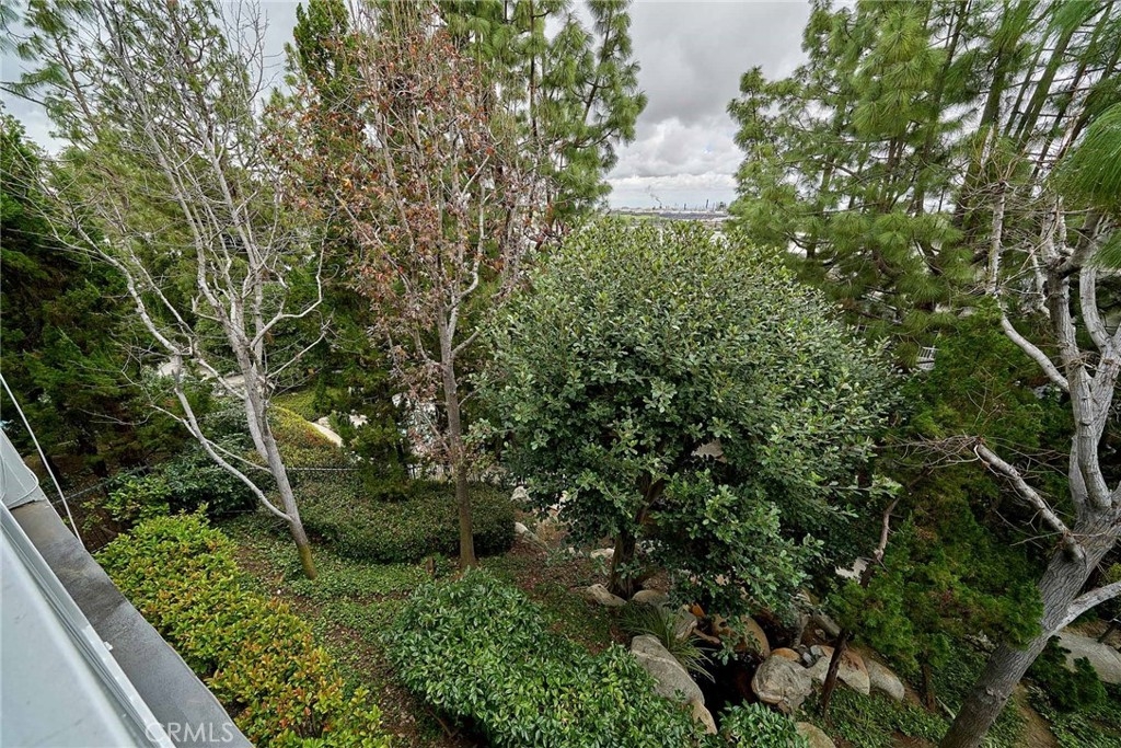 Welcome to the finest seaside condo association in San Pedro. Near so many stores: Trader Joes, Boutiques, Target, Home Depot, repair shops, and restaurants for your convenience, as well as the 110 freeway, schools and the port of Los Angeles. This unit is one of a kind in it's custom updating. The remodeled kitchen has oak cabinets with pull-out soft close drawers, shelving (in the cabinets under the counter and the pantry) and soft close doors. The double oven and appliances which are relatively new are all included. The living and dining area boasts Brazilian cherry wood floors, hardwood in the front bedroom, recessed lighting in kitchen and hallway, double vanity in master bath, stacked large load washer and dryer in your unit. This unit has an exceptional number of closets which gives TONS of storage, including a 9' mirrored closet in each bedroom. Master bedroom closet has three movable doors to allow for a dresser inside. The balcony, off the living room, opens to the sound of a man-made stream with peaceful waterfall and a canopy of mature trees. The invisible screen (that rolls into itself) in front allows the door to be open for fresh air and soft breeze on warm days. The central heat and a/c is a plus for those hot summer days and nights. The storage closet on the same level is just down the hall. The bay kitchen sink window overlooks a large terrarium of well maintained local plants and trees. This unit has HVAC so you can enjoy your summer days without sweltering away in August and September. You will have two parking spaces, not tandem but near each other in the parking lot. HOA dues include water, landscaping and trash. Come and see this updated turnkey unit.