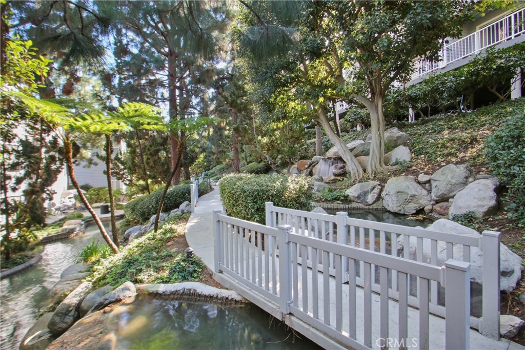 This freshly painted 2 bedroom 2 bath condominium is located in the well maintained gated community of Harbor Gate. There's lots of natural sunlight from windows on both east and west side of this unit. The wood flooring extends throughout the living room, dining area and both bedrooms. The spacious living room offers a gas fireplace and access to the large balcony overlooking the lush landscaping with scenic views of the waterfall and the stream. This perfect setting provides restful and serene privacy for any occasion. Tile flooring in both bathrooms and the entry as well as the kitchen. New window coverings in both bedrooms. The stackable washer and dryer are included in the sale as is the stove, refrigerator, and built in appliances. The unit offers forced air heating and central air conditioning . The condo comes with a separate storage room just steps away from your front door and close to the elevator which provides easy access to the secured subterranean garage with two separate parking spaces # P256OA and P256OB. The complex also offers gated swimming pool and spa.