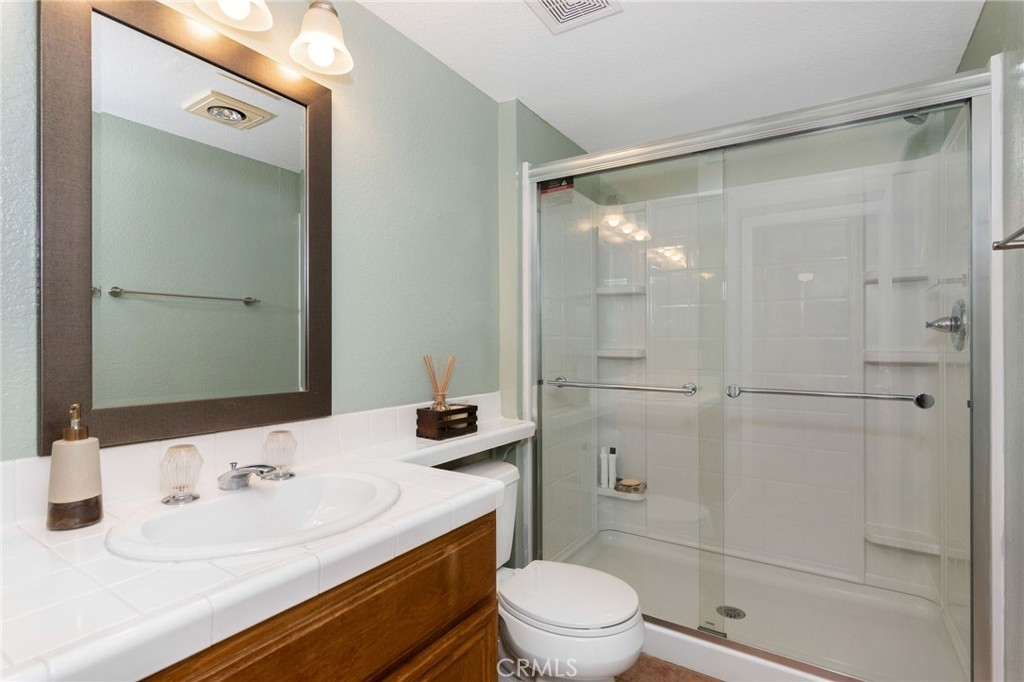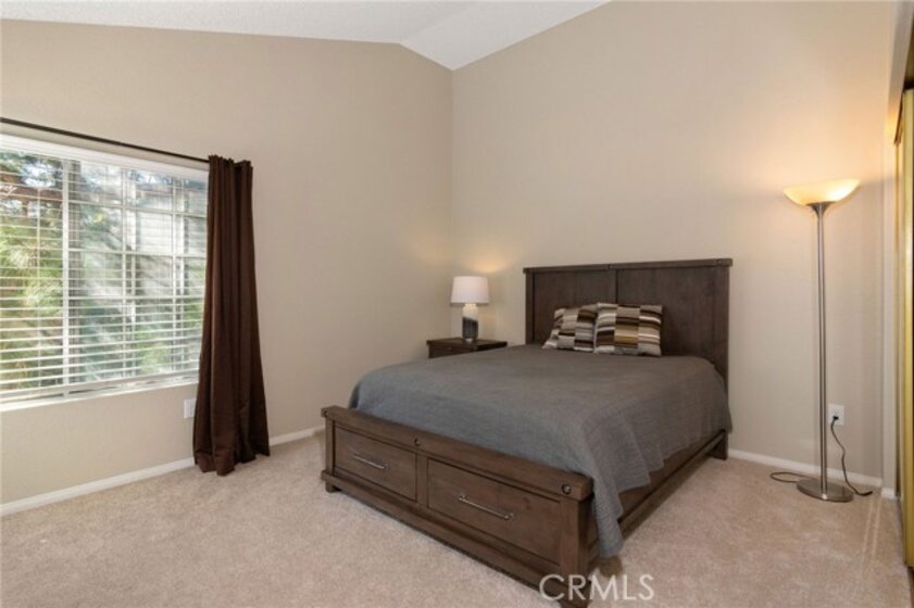 Rarely available-top floor unit! This 2 bedroom west facing condo has everything you need. When you enter, there is a bright white kitchen to the left that opens up to the dining and living room area. Vaulted ceilings expand the space to let the sun shine in. The view is what captivates you. Enjoy privacy with serene tree views and soothing sounds of the waterfall below you on your roomy balcony. Notice the newer wood laminate floors and carpet through out the unit. The spacious primary bed room has vaulted ceilings and 2 large closets. Extra storage through out the unit including a personal locked storage room right outside your unit. Gated entry with gated subterranean garage and 2 parking spaces near ELEVATOR. Well maintained landscaping through out the complex. Relax by the pool and jacuzzi. In 2021, the following improvements were made: NEW heating and air conditioner system, wood laminate flooring, carpets, ceiling fan, and interior paint. In the kitchen: refaced cabinets with new doors, drawers, and hardware. Replaced dishwasher, microwave, and disposal. Additional HOA amenities include: water, trash, sewer, land maintenance, insurance, and earthquake insurance. Close to restaurants, shops, and freeways.