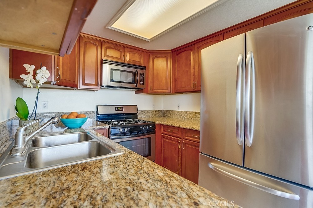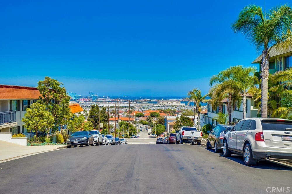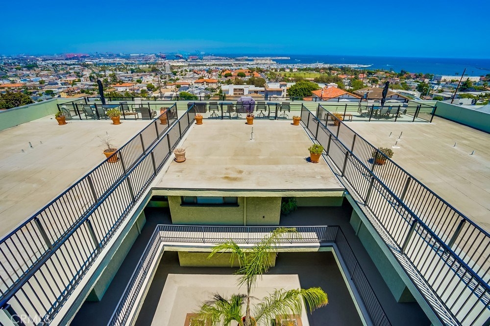 This darling and beautifully updated corner end unit condo is FHA APPROVED!!!! Tons of sunlight and breezes coming in! Beauiful PEEK-A-BOO OCEAN view through the living room windows and from balcony. Kitchen and bathroom have granite counters and tile flooring. Stainless steel appliances including a built in microwave...all included. New lighting/ceiling fan fixtures in bedrooms. Newly painted with neutral paint pallet. All you need to do is move in! Also take advantage of the common area ROOF-TOP deck with beautiful HARBOR, CITY, and OCEAN VIEWS where mother nature entertains you with sun rises and colorful skies at sunset. Located just minutes from Cabrillo Beach, Marina, Harbor, Point Fermin Park, and Korean Bell. Easy access to 110 freeway. Easy access to 2 parking spaces (1 with storage cabinet above). Have pets? No problem...and there's very easy access to 24th street for dog walking without any stairs. Secured bicycle storage area. San Pedro was awarded 2017 Curb LA's Neighborhood of the Year. San Pedro Public Market is due open in 2020 featuring commercial, retail, restaurant, hotel and conference center space, three-acre “Fisherman’s Park, pedestrian waterfront promenade, trails, and more.