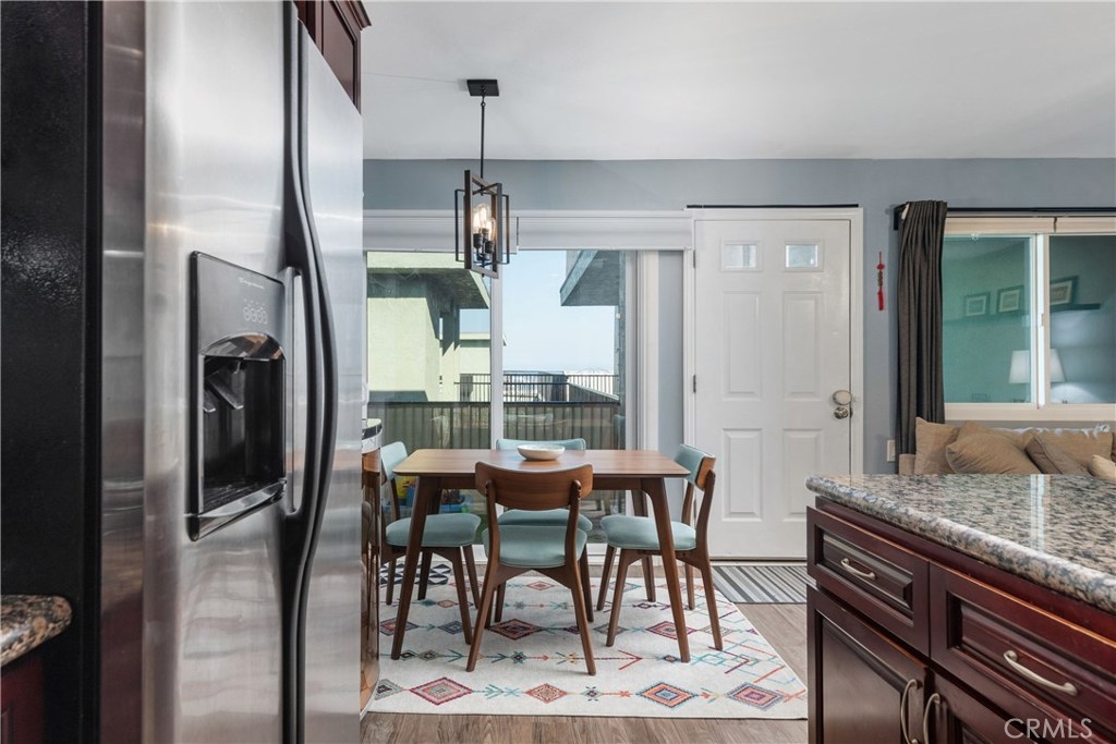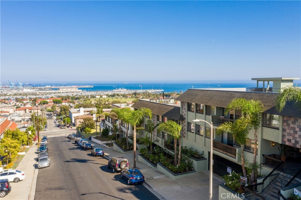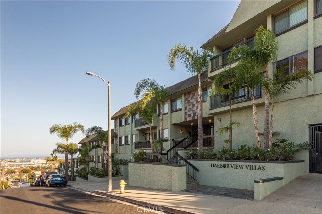A chic and elegant penthouse perched above the Pacific Ocean and Harbor lights - this beautiful home in the Harbor View Villas brings smartly appointed features with the comforts for everyday living. Offering 1 bedroom, 1 bath,640 sq. ft of living space, and a Harbor view balcony, you will find newer finishes and attention to detail. The open living space with wood-style floors and designer tones, brings great room style living. The spacious living room, dining space, and stylish kitchen with granite countertops, stainless steel appliances, ample rich wood cabinetry, and an eat-in counter are highlighted by the private balcony with views to the Harbor lights in the horizon. The peaceful primary bedroom suite with wood-style floors and large closet is the perfect retreat, and the full bath has an expansive counter top and plenty of storage space. Add'l features include: In-unit washer and dryer, air-conditioning, new windows and slider, bike storage, 1-Car parking, and viewing decks from the recreation areas. This home will impress and delight giving you the much deserved place to chill and relax or to entertain. Just minutes from the vibrant restaurants, art galleries, and shopping in the downtown San Pedro and the Waterfront and Ports O’ Call, the natural beauty of the trails, bluffs and coastline of the Palos Verdes Peninsula, and just blocks to the sands of Cabrillo Beach and the surf at White Point - make this wonderful opportunity in the Harbor View Villas yours.
