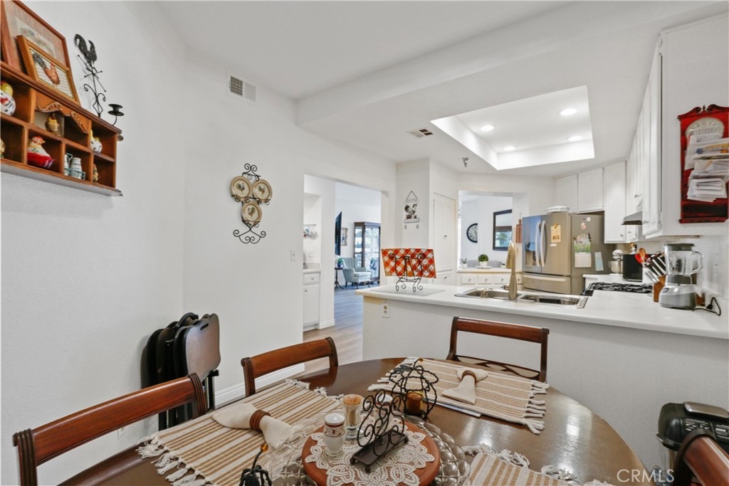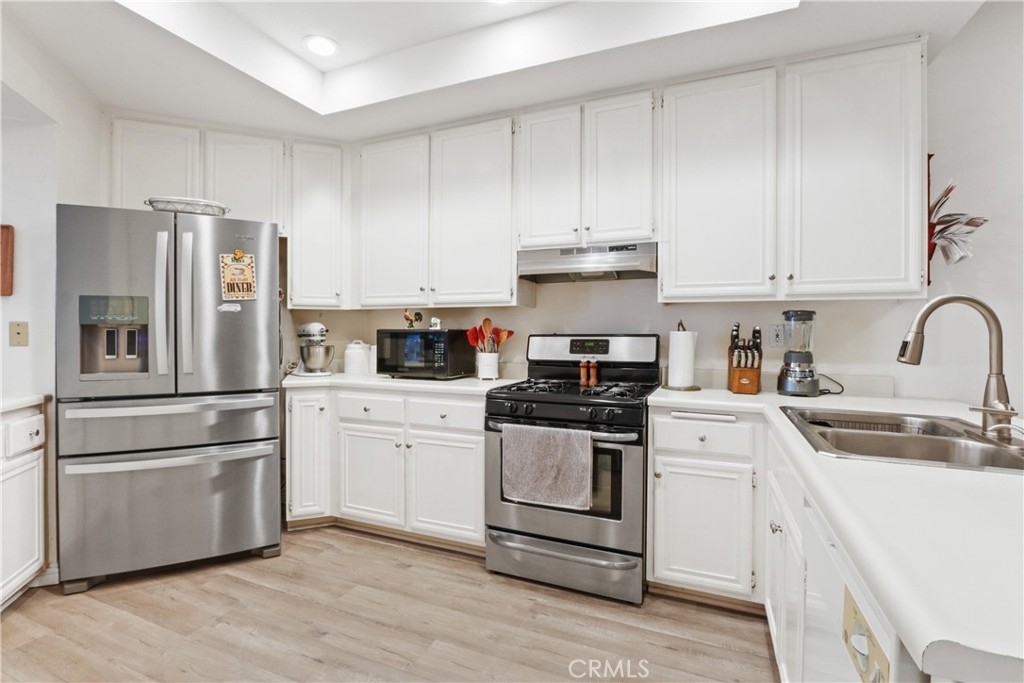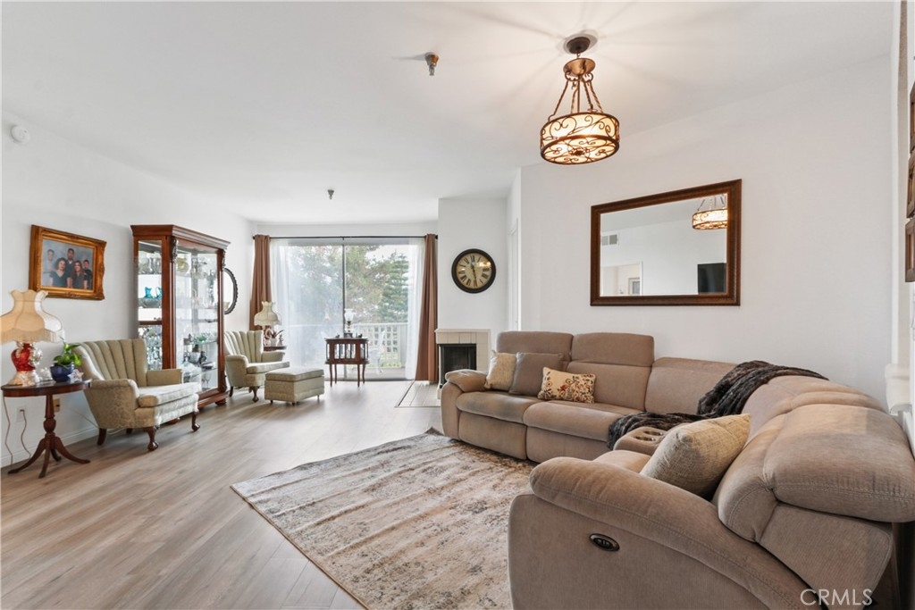 Welcome to this 2+ bedroom, 2 bath home bathed in natural light, which offers a bonus room, and a balcony with treetop views. Almost 1500 ft.² of spacious living welcomes you here. This home offers a cozy living room fireplace, a separate dining space, and open kitchen with lots of counter and cabinet space. The convenience and ease of having a private laundry right inside your unit. The primary suite has a walk-in closet and primary bath with a separate tub and shower stall, double sink, and spacious vanity. This gated community, found at the end of a cul-de-sac, not only offers elevator access, a pool, bbq area, rec room and gym. Two side-by-side parking spaces, and so much more. All perfectly located near shopping, restaurants, freeway access, and so much more. Don’t miss your opportunity to call this your new home!