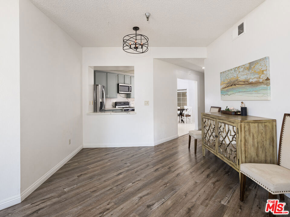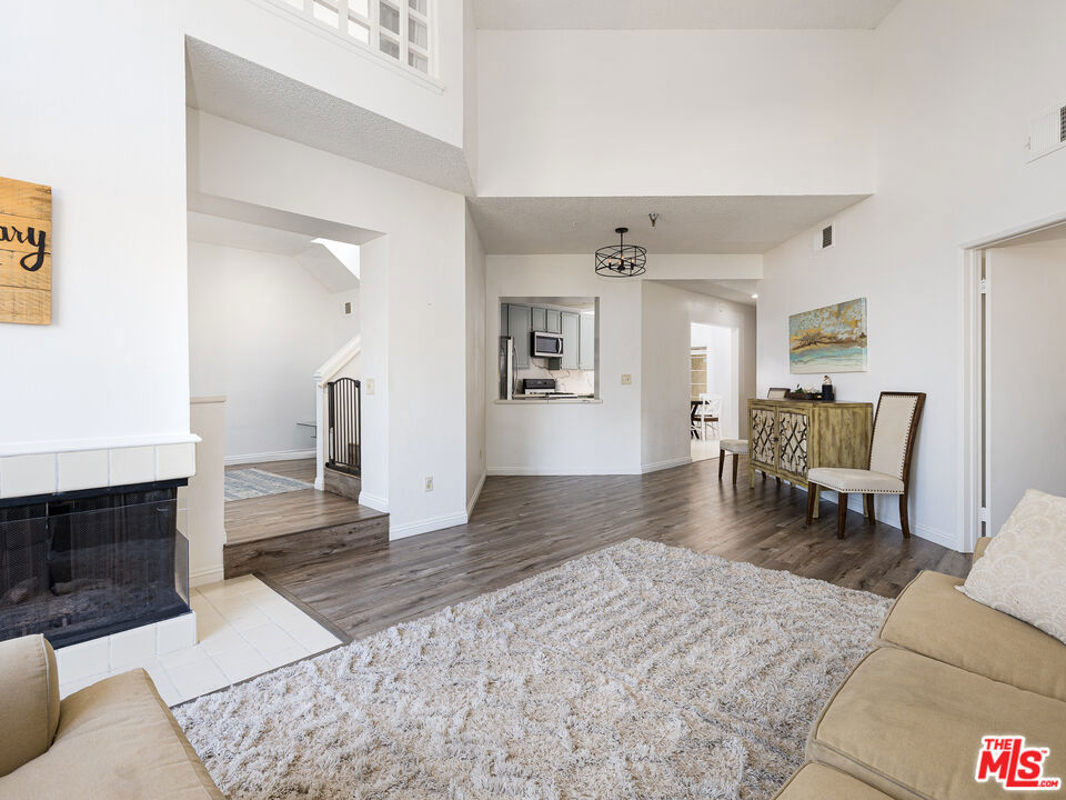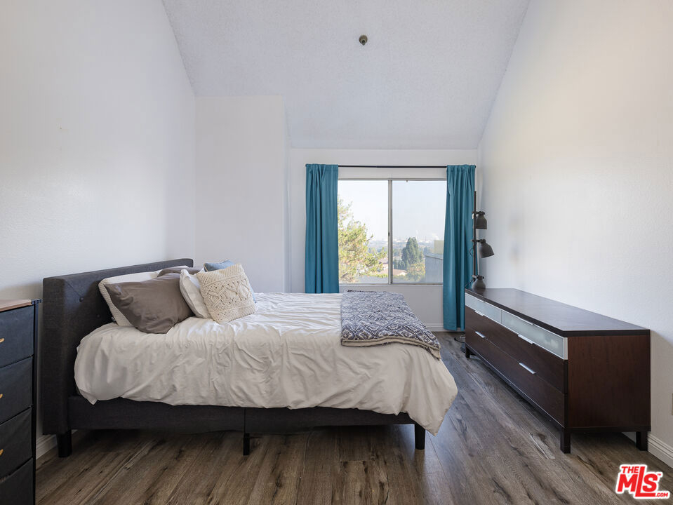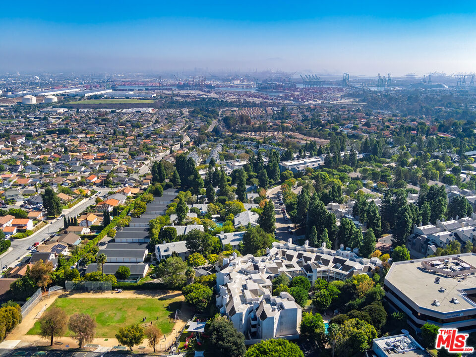 Picturesque condo that nestled at the end of a cul-de-sac in coastal San Pedro. The serene community has a private gated parking and is built around a treelined area of the city. Oak colored floors adorn the entrance to this lovely condo which are complimented by pure white colors walls that continue to rise up to impressive vaults that can be enjoyed in the dining room and again in the large family room. The airy expanse invites tremendous light to pour in the volumed space organically. The entire structure is protected by a woodland area that welcomes local bird life, which gently fills the home with pleasant singing, a testament to this homes peaceful nature. A large balcony breathes in views of the port, Palos Verdes hillside, local soccer fields, and encompassing greenery. The dining room has such an open feel that leads right into the updated kitchen that is customized with quartz counters, backsplash, and touches of a beautiful teal hue on all cabinetry that create a welcoming ambiance for friends & family to enjoy home cooked meals. A secondary server off the kitchen is complete with a sink and additional cabinetry plus mirrors which is a huge asset during culinary experiences at home. A wonderful bedroom overlooks lush plant life plus walkway and tons of sunlight at the from the home. There is a laundry room inside of the home and this condo happens to be one of the biggest this complex offers. The family room has an attached sitting room that has sweeping views and a cascading staircase that lifts up to an amazing loft. The loft can be left to the imagination of the owners to be a den, hangout, kids playroom, or boardgames area. Luckily, the complex is positioned to be walking distance to theaters, restaurants, shopping, and a short distance to freeway access. The gated garage comes with 2 spaces. There is an elevator that goes from the private parking up to the top floor. The primary room is an incredible secluded sanctuary. The vaults in this area add another layer of gratitude to the living space which mark an incredible difference to be on the top floor. There's a lovely his and her closet and his and her sinks side by side that complete this part of the home.