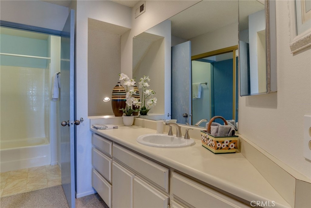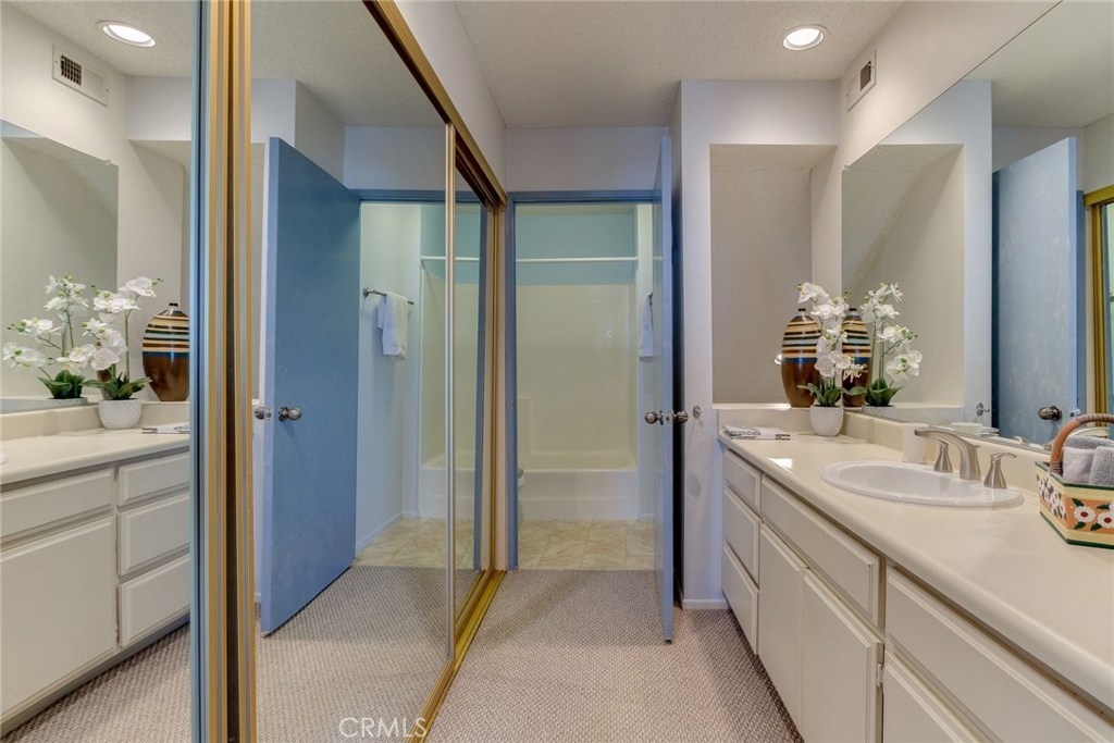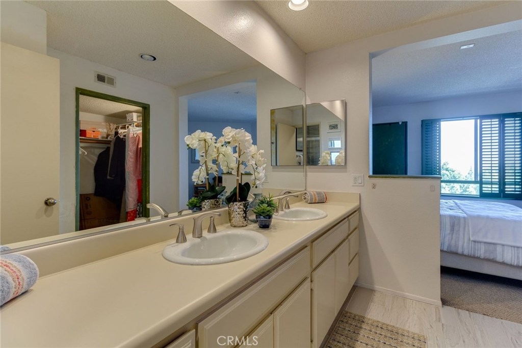 ***Welcome to Resort style condo at "Harbour Walk" gated community*** This valuable corner unit is in a very private location. There is some view – Trees, City lights and Mountains. Spacious 2 story condo features 2 master suites, 2 1/2 bath 1,447 sq-ft. Beautiful light colored wood floor installed in the living room and dining area. Cozy fireplace located in the living room. Dining area is easy access to big patio. It's perfect to entertain family and friends or just relax. Also, Laundry room and storage are in Patio. Kitchen has stainless stove, dishwasher and sink. It has space for breakfast nook, plenty of counter space and cabinet. 2 master suites are upstairs. One of Bedroom has recently remodeled bathroom with modern style tiles in shower room and floor, clear glass shower door. There is spacious walk-in-closet and additional closet. Another bedroom has extra large closet with mirrored doors as well as additional closet. This community offers pool, spa and BBQ area. HOA recently upgraded the exterior of the building, replaced new doors outside balcony, new rails, gutters, roof and new paint. Very convenient location to major super markets, restaurants, movie theaters, fitness, parks and more.