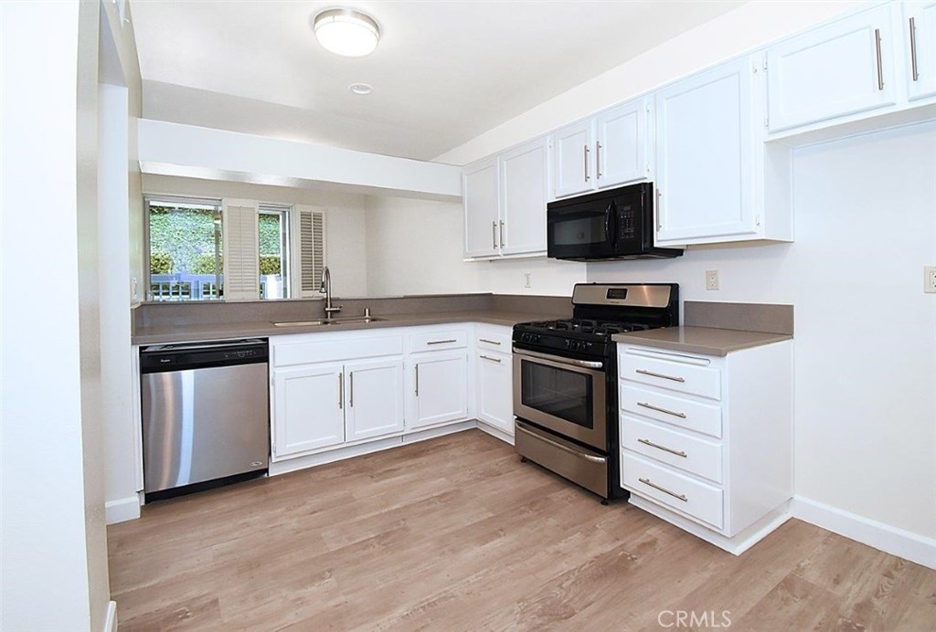 Don't miss this one! Sparkling clean with new paint, new woodgrain waterproof vinyl flooring downstairs and all bathrooms, re-done kitchen with stainless appliances and quartz counters, new carpet on stairs and both bedrooms, updated lighting fixtures, USB ports in living area and both bedrooms plantation shutters and more! Private patio has closet with washer/dryer hook ups plus there is an additional storage closet. Complex has a beautiful pool and spa with barbecue area and meeting room. Walking distance to markets, banks and restaurants and is just minutes away from the Harbor Freeway.