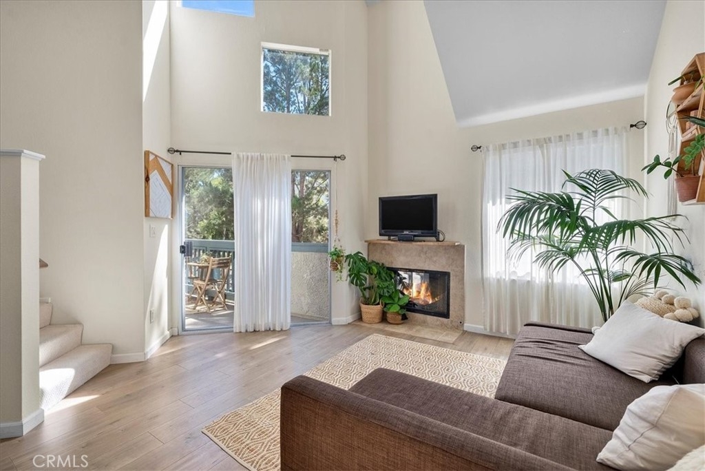Welcome to Harbour Walk! A resort style gated community, with pool, spa, BBQ area, club house and conveniently located next to grocery stores, shopping centers, a theater and restaurants. This two-story, loft-style condo is filled with incredible natural light, cathedral ceilings and many windows overlooking views of lush greenery. Featuring two bedrooms, two bathrooms, an upgraded kitchen with breakfast island that overlooks the dining room and living room with fireplace. Off the main level is the master suite including a master bath with shower, tub, walk-in closet, and access to the balcony that extends to the living room entry. The upstairs loft-style bedroom and bathroom with shower is perfect for a guest bedroom, office, gym, etc. Additional features include stackable in-unit washer and dryer, central air conditioning and heating, newer luxury vinyl and carpet flooring, designated subterranean garage parking spaces, and plenty of guest parking.