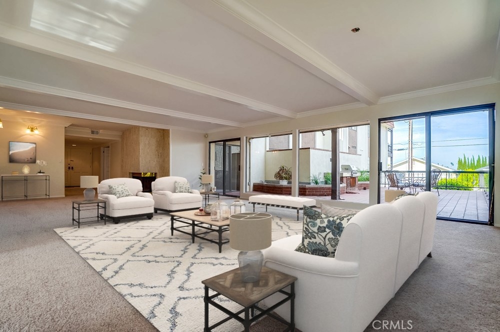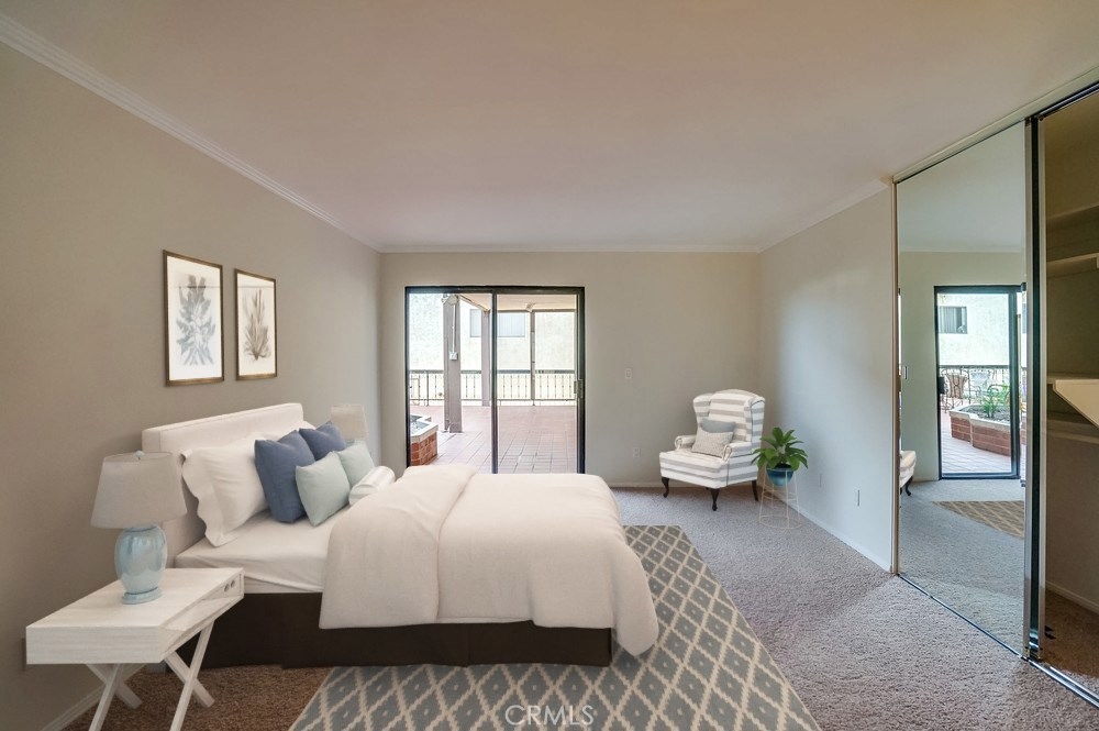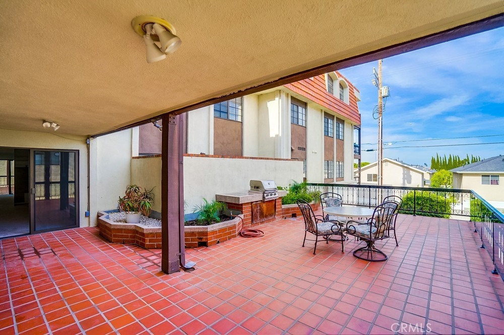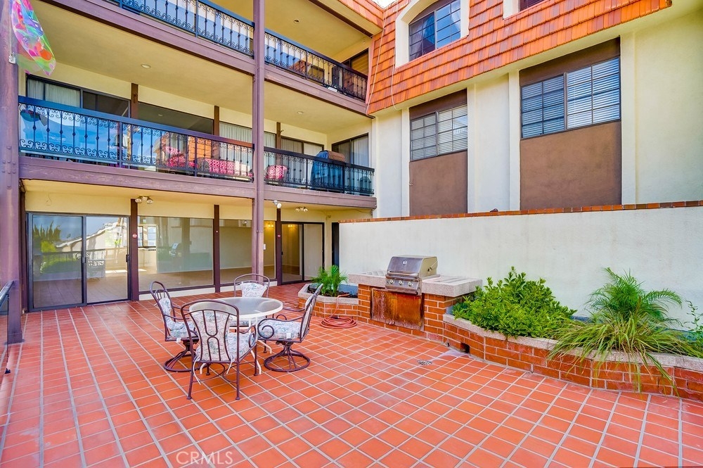 Rare opportunity to own a beautiful ground floor end unit in the very desirable 12 unit complex known as "Leland Chateau". This amazing unit offers almost 1900 sq ft of move-in ready living area & an incredible 530 sq ft tiled patio with built-in bbq that is perfect for weekend entertaining. Double-door entry leads you to a wide foyer & a view of the massive living area that features an attractive fireplace, coffered ceilings & a 26 foot wall of glass that looks out onto the private patio. Gourmet kitchen features bright white cabinetry, granite tile counters, built-in appliances & a spacious dining area. The master suite features his & hers closets & sliding doors to access the patio. The impressive master bathroom features a double vanity, soaking tub, separate shower & tastefully done tile finishes. Guest bedroom features a walk-in closet & is adjacent to another nicely appointed full bath. Indoor laundry room is a must-have convenience & there is ample storage throughout the unit. Interior has just been freshly painted, newly carpeted & the marble floors polished & sealed. This unit if flooded with natural sunlight thanks to the multitude of windows & Southwestern exposure. Step out the front door of the unit & you're at the elevator that brings you to the secured parking garage offering two side-by-side spaces, overhead storage cabinets plus a 8 ft x 6 ft private storage room. This unit really is quite unique & must be seen to be appreciated. HURRY!