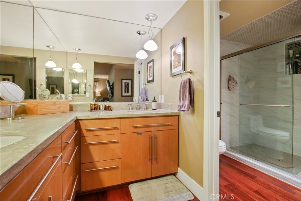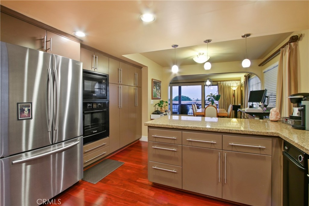 If you’ve been looking for an affordable, spacious property with an amazing HARBOR VIEW well, here it is! As you come through the upscale double door entry, your eyes will drift to a wall of glass flooding this home with natural light. A formal entry hall leads to a generous living room with plenty of room to relax or entertain! A gorgeous built-in wall unit offers a place to showcase your treasures, and a cozy fireplace with glass rock adds ambience to the room. Step out onto your private veranda and gaze at the beautiful harbor, the Vincent Thomas bridge, the cruise ships, the mountains – YOU CAN SEE IT ALL! Enjoy the sunrise every day while you sip your morning latte! The adjoining dining room awaits your holiday entertaining. Love to cook? This kitchen was made for you! With FOUR pantry cabinets you won’t run out of storage space! Contemporary flat panel cabinets are topped with granite counters and a stone tile backsplash. There’s a wall oven with built-in microwave, stainless cooktop/range hood and dishwasher. Lots of counter space to S-P-R-E-A-D out while you cook! Just around the corner is a separate laundry room that doubles as a butler’s pantry with more cabinets and counter space. Your sanctuary awaits down the hall in the generous master suite –plenty of room for your big comfortable furniture in here! The walk-in closet has more than ample room for all your clothes! The en-suite bath offers an “L” shaped double vanity (and more storage!) and a newly remodeled full-sized stall shower with clear glass doors. A 2nd bedroom is also more than generous and has TWO closets with mirrored glass doors. The 2nd updated bath is just across the hall. High-end central heating and AC system is only 4 years old! Take the elevator down to the gated underground garage and you’ll find 2 side-by-side parking spaces, a private storage room and 2 additional storage cubbies. This 12-unit complex is well managed and well maintained, conveniently located to stores, schools and offers easy freeway access. It’s also a short distance from the new West Harbor development, San Pedro’s new burgeoning waterfront destination! Oh….DID I MENTION THE VIEW?????