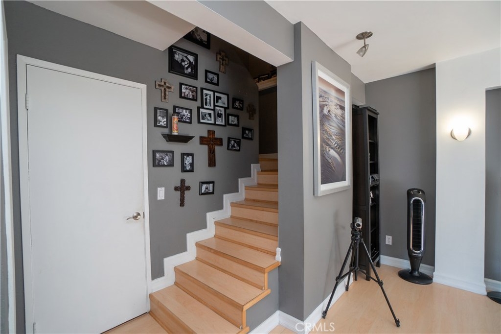 Townhouse style condo in the Miraleste Canyon Estates. This unit features an open floor plan kitchen, dining, and living room with 1/4 bath downstairs. Upstairs you'll find two nice sized bedrooms and a bathroom. Washer/dryer hook ups in unit, new AC unit downstairs and in upstairs bedrooms. Includes two parking spaces and for additional parking the unit is conveniently located off Miraleste Dr. near access gate. Enjoy carefree living in this quiet complex that offers 24 hour security, 3 pools, 2 spas, 2 gyms, clubhouse with kitchen, rec room, billiards, and on site maintenance.