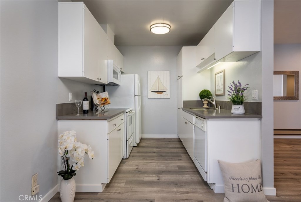 Welcome home to Miraleste Canyon Estates! This beautifully updated, upper level, end unit condominium with an oversized balcony is what you’ve been dreaming of. The home's features include an open concept living room with space for your office and dining area, a spectacular kitchen with stylish white cabinets and pantry, impressive quartz counters, beautiful wood grain vinyl plank flooring, two tone interior paint, 3” baseboards, scraped ceilings with recessed and contemporary lighting fixtures, plenty of natural light, gorgeous plantation shutters and a new air conditioner. The spacious bedroom boasts a luxurious en-suite with a generously sized 48” vanity, elegant mirror and a magnificent walk-in closet. Miraleste offers an impressive array of amenities including 24 hour Guard Gated Security, 3 swimming pools and spas, Swiss Chalet style clubhouse with step down lounge with fireplace and television area, banquet hall with a full kitchen, ping-pong and pool tables, reading area, meeting room, a variety of exercise equipment and luscious landscaping. Nearby community features include Trump Nat’l Golf Club, White Point Park and Beach, Cabrillo Marine Aquarium, San Pedro Fish Market, Restaurants, Theaters, Museums and Seaside Harbors. You’ll love living 2-3 miles from the beach and next to the prestigious city of Rancho Palos Verdes.