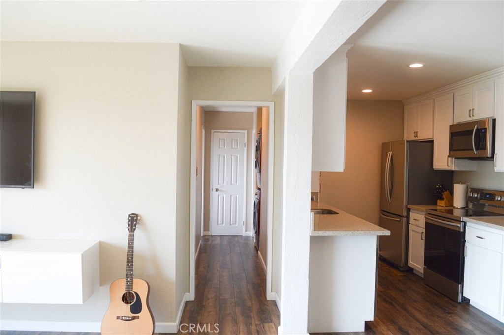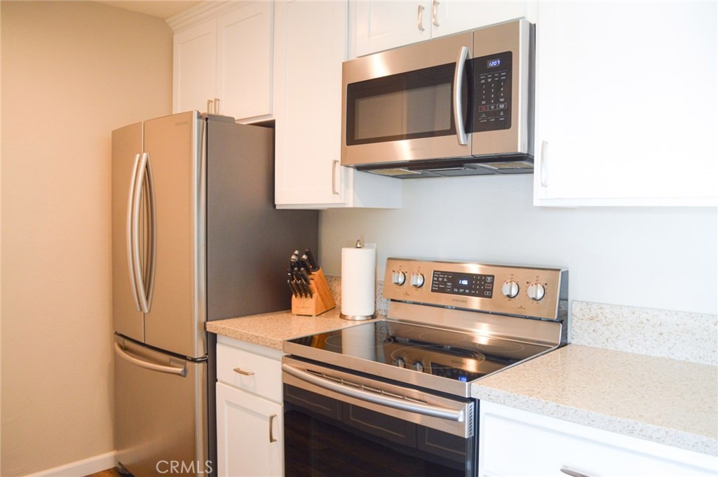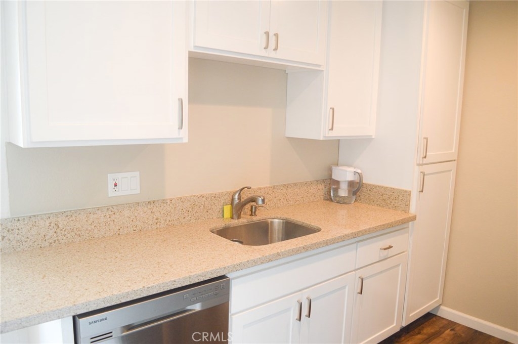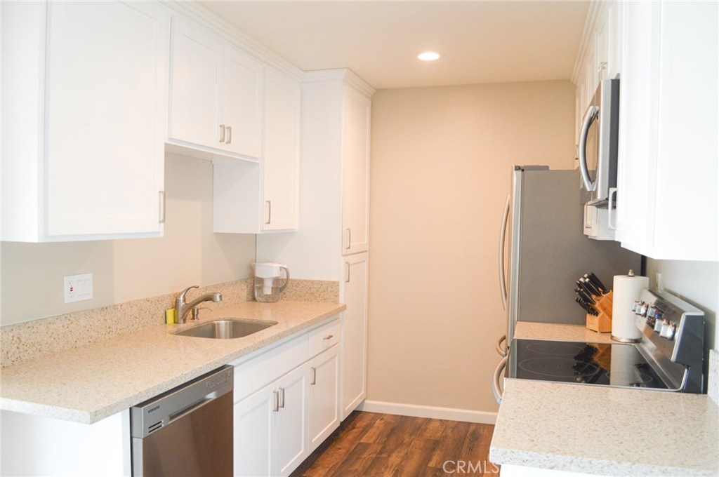 Gorgeous totally remodeled lower level 1 Bedroom 1 Bath Unit. South facing unit with lots of Natural light overlooking secluded Miraleste Canyon. Rich Nw Laminate flooring run throughout the unit. Totally remodeled kitchen with Stainless Steel appliances and bathrooms with quartz counter tops and new cabinetry. Custom Completely tiled Tub shower with new tub. Stackable Washer and Dryer Hookup. Parking is very close to the unit. A sparkling swimming pool, Clubhouse and Gym are only a few steps away from the unit. Best value in Miraleste Canyon. Absolutely Turn Key condition. Nothing left to do.