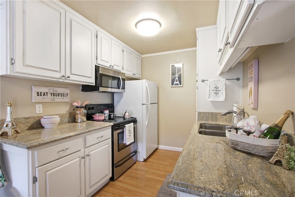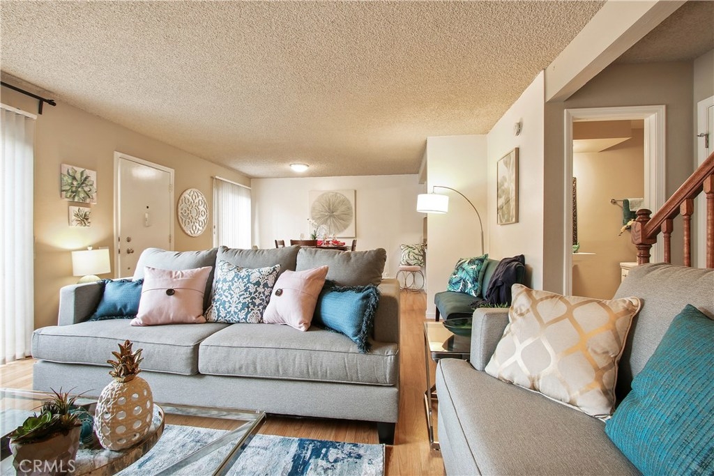 This beautifully updated condo at Miraleste Canyon Estates is ready for you to call home! Located in the middle of the complex but close to walkways, parking, laundry and pool. Gleaming bright white cabinets in kitchen & baths with brushed nickel hardware. Kitchen also features granite countertops, stainless steel range and microwave. Dishwasher. Engineered hardwood flooring in living areas, kitchen and stairs. Tile floors in all bathrooms. Newer air conditioning unit was recently installed. Good sized front patio is enclosed to enjoy al fresco dining or a cup of morning coffee. This unit comes with TWO parking spaces. There is the potential to add laundry to the unit. Large closet runs under staircase for additional storage. Complex has 3 pools and jacuzzi's, a clubhouse, two weight rooms, cardio room, 24-hour guarded entry gate, pet stations, and more. A few steps from Rancho Palos Verdes, you are surrounded by single family homes. Easy access to freeway entrance, shopping, restaurants, two parks and more!
