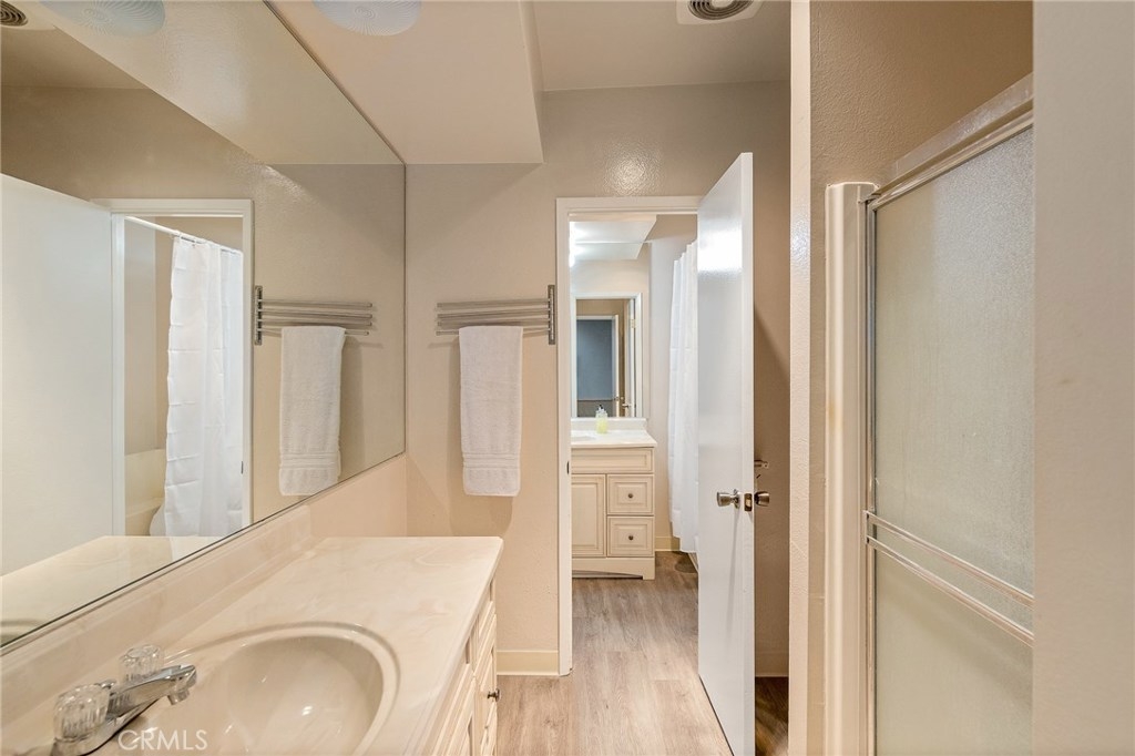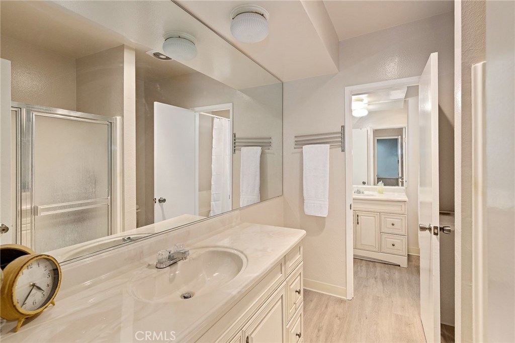 Check out the Virtual Tour! Welcome to your townhome style condo in the resort-like Miraleste Canyon Estates adjacent to the Palos Verdes Peninsula. This delightful end unit offers a traditional floorplan with the open living space downstairs. The large living area leads out to your inviting patio ideal for letting in the breeze & enjoying BBQs. The fresh, neutral kitchen features plenty of cabinetry including a pantry, Corian counters, range with newer built-in microwave & opens to the dining room for easy entertaining. This first floor is complete with a half bathroom for guests plus a spacious storage area under the stairs. Together upstairs, the 2 bedrooms both boast ocean & harbor views! The ample Master suite provides a wall of closets & connects to both upstairs bathrooms. An alternate use for some of the bathroom space is to convert it to a private washer & dryer area as the plumbing is close. Recent upgrades include double pane vinyl windows & sliding glass door, neutral paint, newer carpeting & hardwood-like flooring. Due to the orientation of this home, the morning sun helps brighten your day while it is shielded from the afternoon heat allowing for comfortable living year-round. Conveniently situated across from the parking for both this home & guests. Rest easy with guarded entry & 24 hour on-site security in this quiet gated community. Move right in & enjoy the amenities including 3 pools, 2 spas, 2 gyms, clubhouse with kitchen, exercise room even billiards.