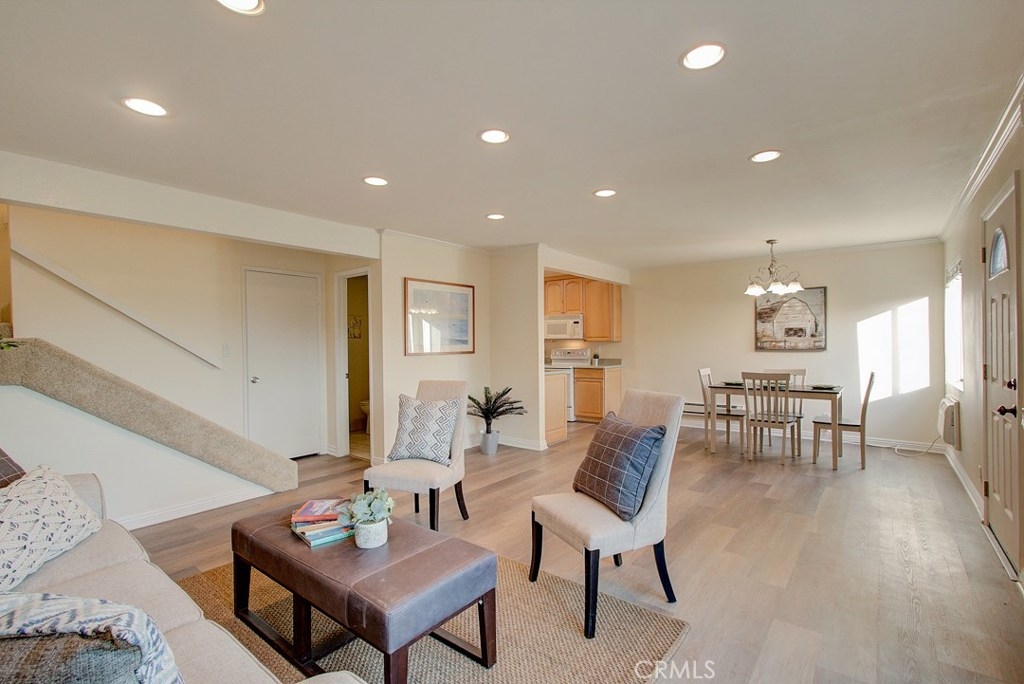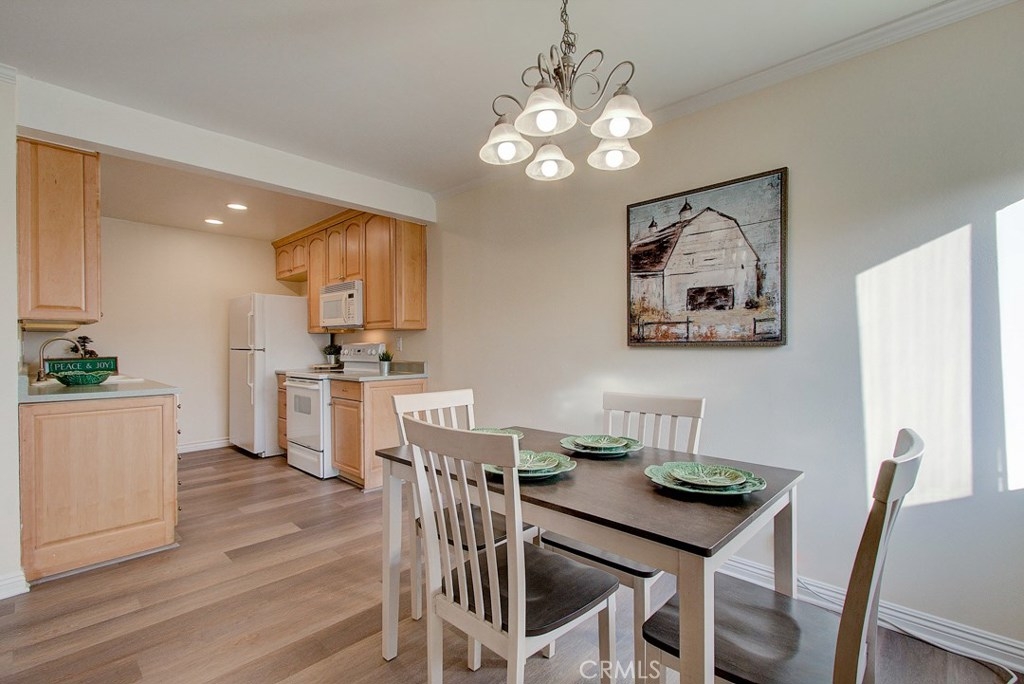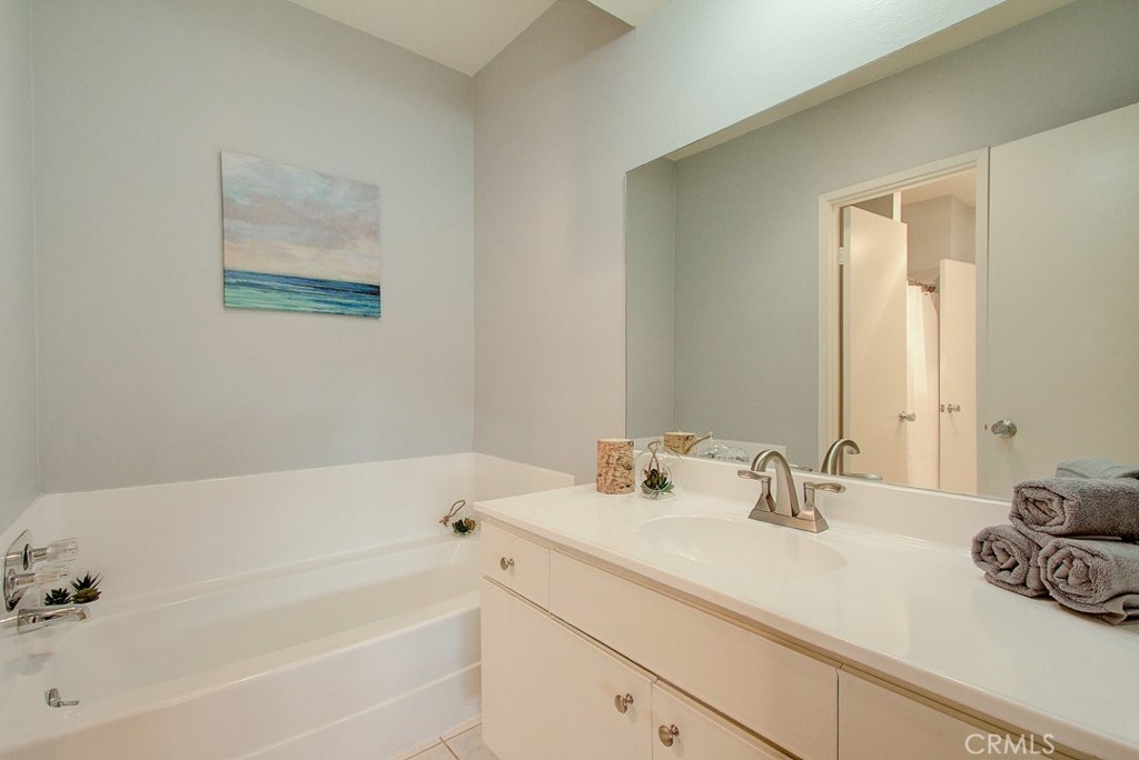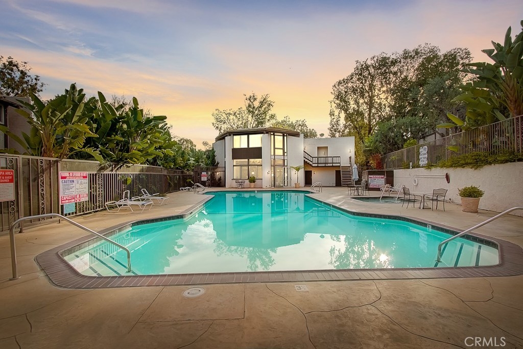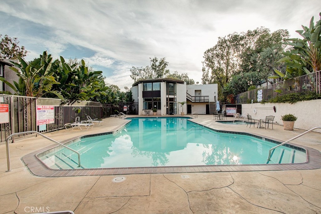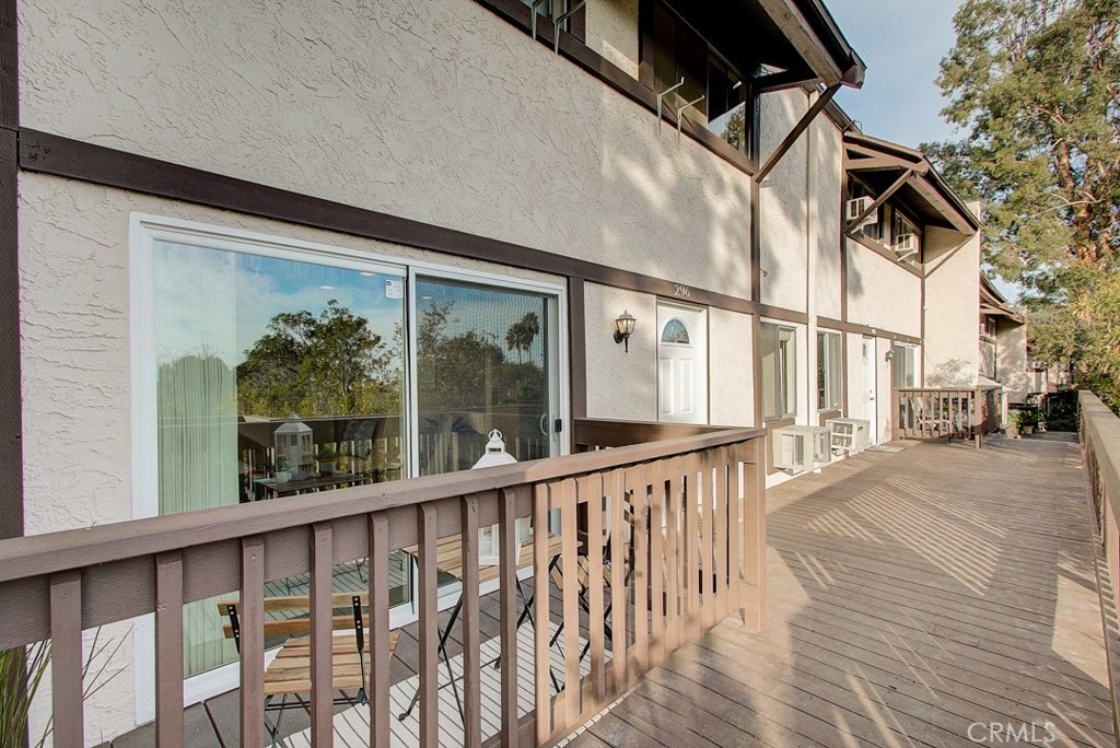 Miraleste Canyon Estates Condo with Views. Just a short distance from the parking structure along a tree shaded path, this condo is bright and has an unobstructed canyon view. The downstairs living area features new, trendy laminate flooring, an open kitchen and a coat closet with laundry hookups. Upstairs the master has en-suite bathroom and plenty of storage. The bedrooms face the canyon providing a quiet and private escape. The community is gated for extra security and features resort-like amenities including 3 pools, 2 hot tubs, 2 fitness centers, library, and pool and ping pong tables in the clubhouse. There is a shared laundry unit close to the unit that is convenient for washing larger loads.