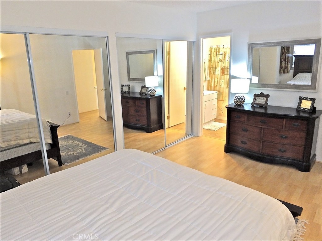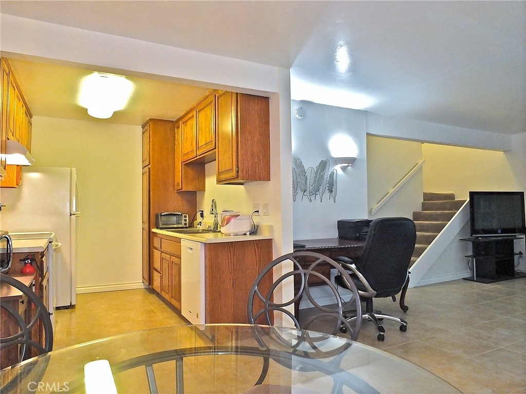 Updated and great location! Tucked away in a private setting, close to one of the community pools, laundry room, and fitness center, and a short walk to your dedicated parking space, you'll find a cozy retreat in the form of a 2 bedroom, 2 bathroom, 2 story condo end unit, with its own patio. In-unit laundry is a possible upgrade. Open to the large living space there's a dining area, which is perfectly situated off of the kitchen. Kitchen features newer appliances. There's a guest bathroom, with a lovely newer vanity, on the first floor, and a spacious storage closet under the stairs. Newer tile floors throughout the lower level, and newer laminate floors on the second bedroom level. Storage closets are aplenty. Upgrades to the condo include new flooring, dual pane windows, new toilets, bathroom vanity, a new front door. Miraleste Canyon Estates is a 24/7 gated, guarded community with lots of amenities for the residents to enjoy all year round, including lush landscaping. Complex offers 3 pools, 2 spas, a children's pool, club house, game room, 2 gyms, and on-site management.
