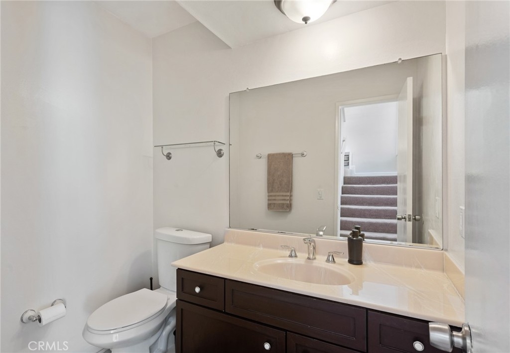 This beautiful Miraleste Canyon Estates END UNIT condo is move in ready! Perfect location with close proximity to the parking lot off Weymouth and short walking distance to pool, gym, and laundry facilities makes this condo the ideal location. Updated kitchen with tile countertops, newer cabinets, and appliances flows into combined living/dining rooms with charming hardwood laminate floors throughout. This condo is unique in that it has three bathrooms (half bath downstairs plus full en-suite and 3/4 upstairs). Large bedrooms with ample closet space allows for plenty of storage space. Private outdoor patio is perfect for grilling and entertaining. Community includes 3 swimming pools, 2 hot tubs, and clubhouse PLUS 24 hour guarded front gate and controlled access. These end units do not come up often so don't let this one pass you by!