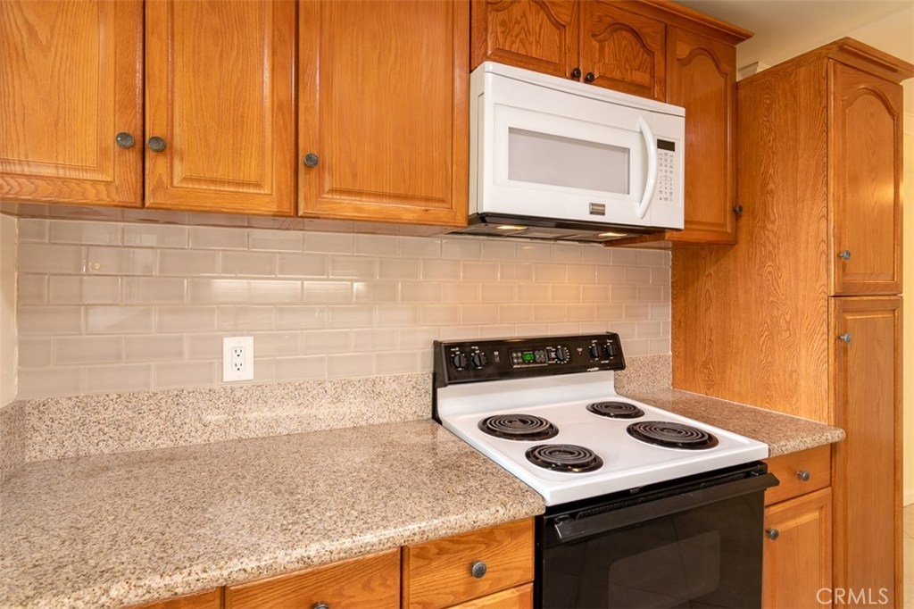 Back on the market...buyer's financing did not go thru...Lovely move-in ready 3 bedroom 2 bath ground floor end unit located in the gated community of Miraleste Canyon Estates. This 1,272 SF upgraded condo is in a quiet and serene location that does not face other units. Property features include recessed lighting, brand new windows, fresh paint throughout, ceiling fans, and tiled flooring. Prepare your favorite meals in the recently upgraded gourmet kitchen with granite countertops, subway tile backsplash, wood cabinetry, and AC unit. The adjacent dining room opens up to the large living room perfect for relaxing or entertaining friends and family, with access to the outdoor patio through the brand new glass sliding door. Retreat to the spacious master bedroom and en-suite bathroom with separate tub and shower. Washer and dryer hookups in the second bathroom. Enjoy the fantastic amenities this community offers, including 3 pools, 2 spas, recreation room with ping pong and pool tables, Clubhouse and 2 gyms. This property has 2 dedicated covered parking spaces and 24/7 security patrol. Don’t miss out on this beautifully remodeled condo, close to schools, shopping, restaurants and easy freeway access.