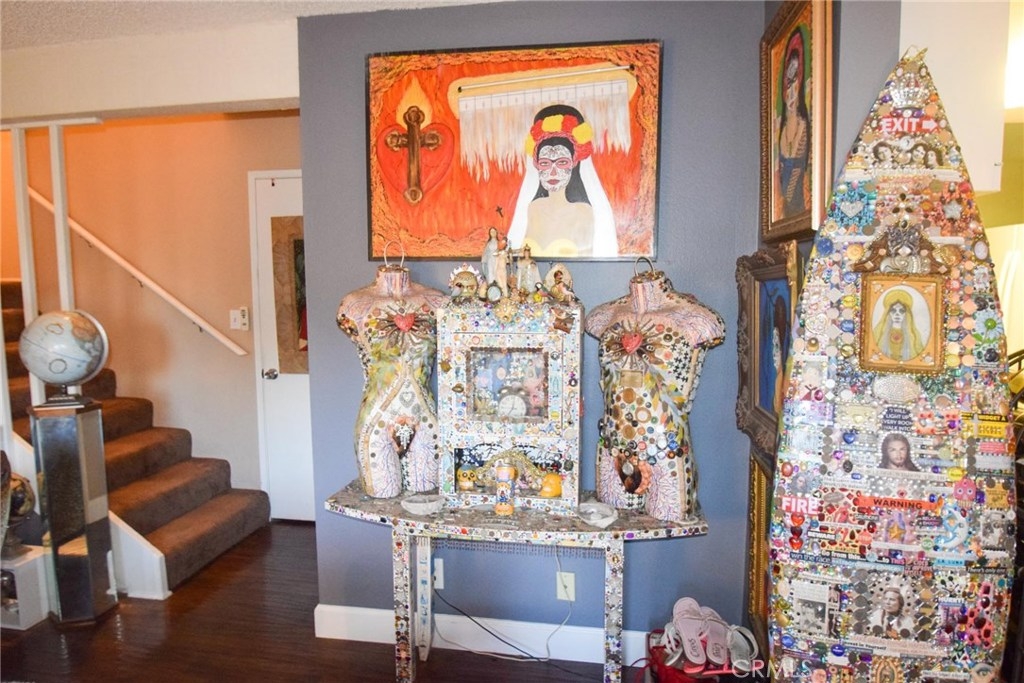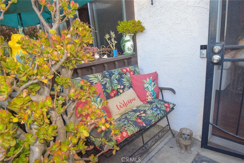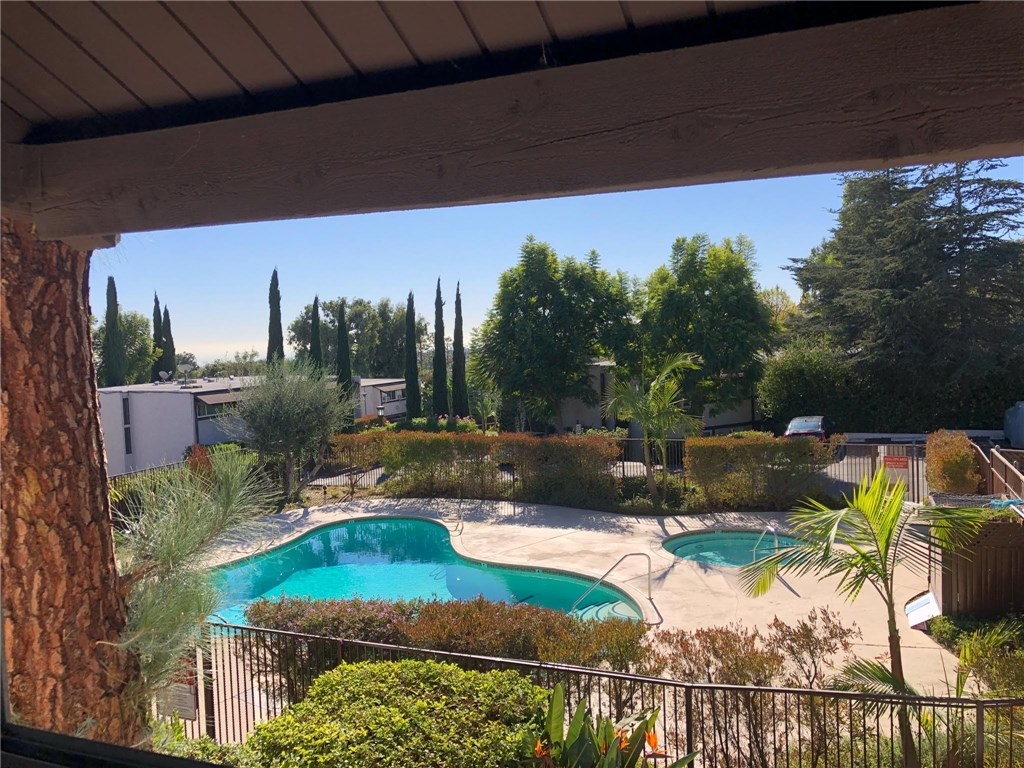 Welcome to Miraleste Canyon Estates! This 24/7 guarded community has so much to offer! 3 swimming pools/spas, 2 gyms, clubhouse and more make this a great place to live! This 2 bed, 1-1/2 bath unit is located just across from the community pool! When you walk in you’ll be hit with “sensory overload” as our lovely seller loves her “bling”! This is truly an artist's enclave, with an eclectic collection of treasures and artwork painted/designed by the owner. Looking beyond this, you’ll find a spacious living and dining room area with updated wood floors, and an original but clean kitchen. Upstairs are two large bedrooms with generous closet space. Both rooms have mirrored closet doors, which make the space feel larger and brighter. The “master” has direct access to the bathroom. When you see everything “squeezed” into the space you’ll realize how big it really is! The 2nd bedroom is currently used as studio/storage space–but there’s a lot of it – plenty of room for your furniture or a great home office! Both rooms offer a beautiful pool view! The bathroom spaces offer a shower stall and a separate tub, and two separate vanity areas. A large balcony off the living room is surrounded by greenery and is super private. This unit is close to the community laundry and the deeded parking space (#860) is close by. Easy access to stores, schools and freeway access. This is the perfect opportunity for first time home ownership and building some sweat equity! Priced to sell QUICK!