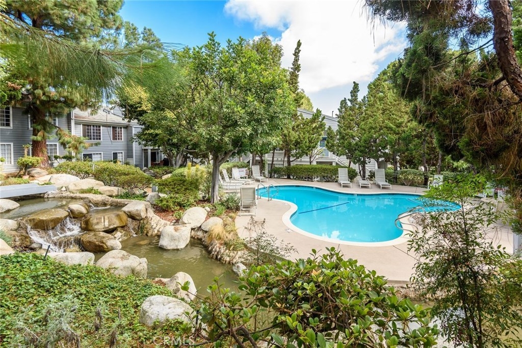 Enjoy your morning coffee on the patio of your wonderful lower end-unit condo in the desirable gated community of Ponderosa Springs. The community features relaxing running creeks throughout along with 4 sparkling spas and 2 swimming pools. The spacious living room overlooks the patio area and includes a gas fireplace. The kitchen is well laid out with a Breakfast Bar and adjacent dining area. Central A/C and heat for those warm days and cool nights. The spacious bedroom has a walk-in closet. The bathroom has been recently updated with a walk-in shower. The unit includes 2-car tandem covered parking. Conveniently located adjacent to guest parking, just blocks to nearby shopping, dining schools and parks. Don’t’ miss this opportunity!