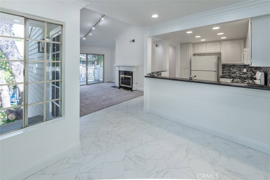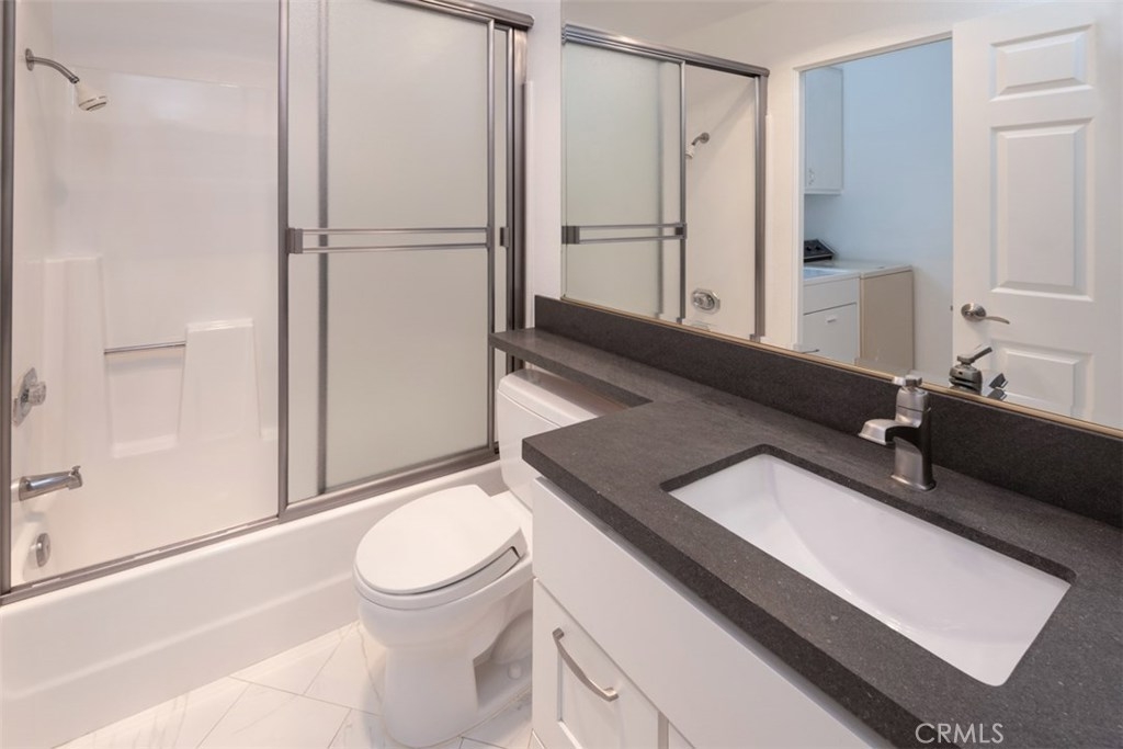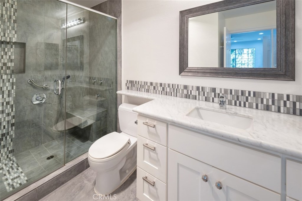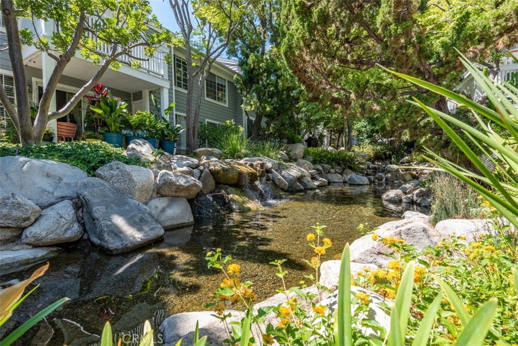 Turn-key upper level condo located in the newly improved Ponderosa Springs. This condo boasts new carpet and paint, an upgraded kitchen with custom wood cabinets, granite counters, recessed lighting and breakfast bar which opens to separate dining area with tile floor. Flooded with abundant natural light, the large living room features vaulted ceiling, a gas fireplace and balcony. The spacious primary bedroom has walk-in closet with organizer and a deluxe ensuite bathroom with a custom vanity with soft-close drawers, quartz countertop, tile back-splash and extra-large step shower with custom tile, glass door and multiple shower heads and fixtures. The full hall bath has also been upgraded with a custom soft-close vanity with quartz counter and tile back-splash – and connects to large interior laundry room with cabinets. Other features include central heating and A/C, exterior storage, 2 tandem covered gated parking spaces and enclosed attic space above kitchen that can be opened and converted to an approximately 150 sq foot loft. Ponderosa Springs recently underwent a well done $4.1 million exterior renovation. Enjoy resort style living year-round surrounded by picturesque grounds with running springs, waterfalls and an abundant variety of mature trees, lush landscaping, 2 pools and 4 spas.